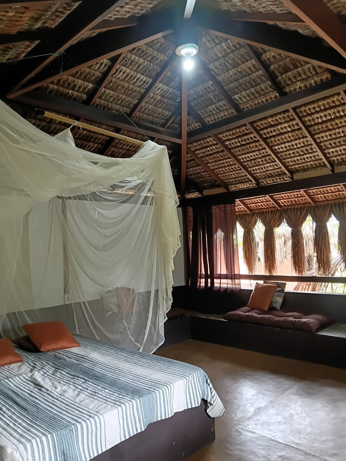 O Chalé fica dentro da praia, em um vilage com segurança e exclusividade em um condomínio fechado a poucos metros da Barrinha onde tempos um lindo espetáculo de por do sol e desague do rio no mar. O Condomínio Joia do Atlântico fica na estrada entre Ilhéus e Itacaré a 25 min de Serra Grande, 1 hora de Itacaré e 35 min do aeroporto de Ilhéus. Ideal para quem busca tranquilidade e conexão com a natureza, é possível ouvir o canto dos pássaros e som das ondas do mar.