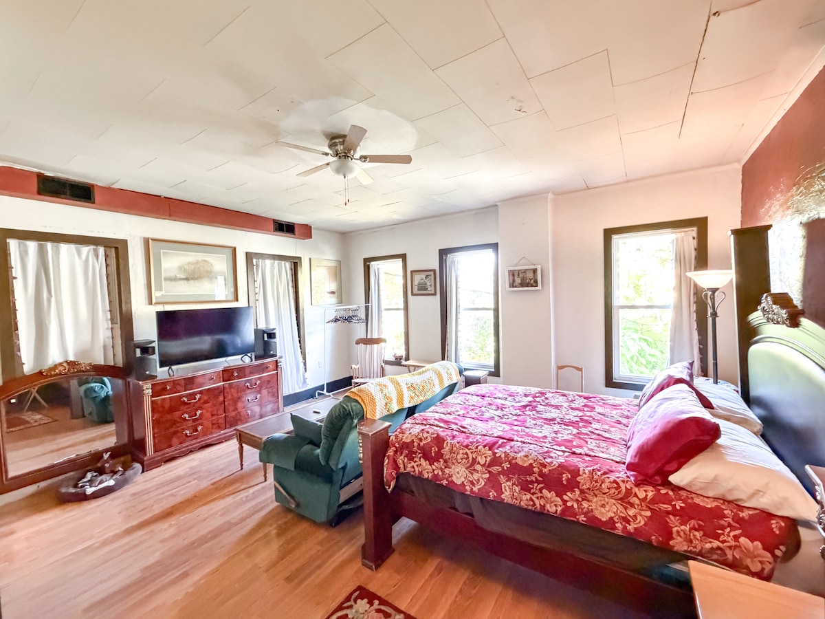 El South Bank Loft cuenta con un gran espacio de estudio abierto, destacado por hermosos ventanales del suelo al techo con vistas a la histórica Main Street en La Habana, Illinois. El espacio ha sido meticulosamente restaurado y cuenta con techos altos de doce pies, molduras de corona restauradas originales, ladrillo visto y suelos de arce de madera original. El loft también cuenta con una pequeña cocina con gabinetes de alta gama, salpicadero de azulejos personalizados e iluminación debajo del gabinete.