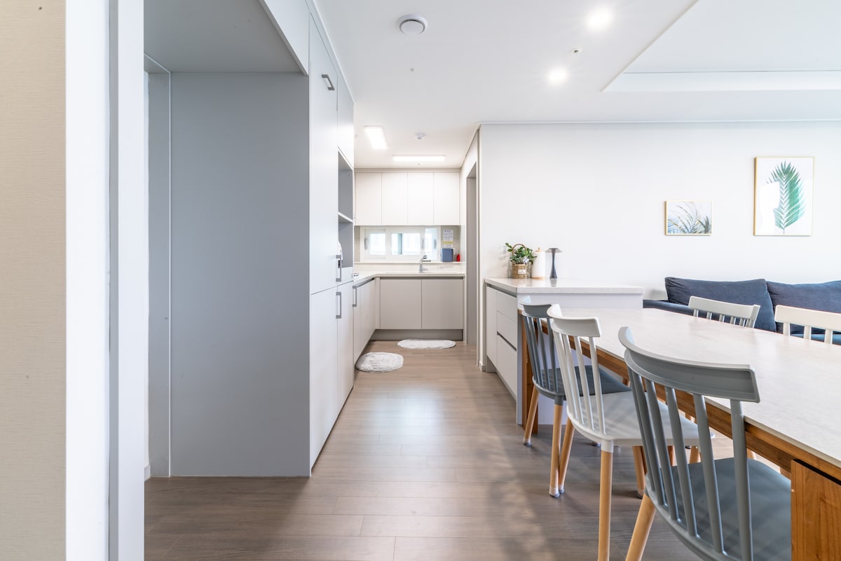 Descuento especial por larga★ estancia (semana: 10%, mes: 25%) ¡Disfrute de un alojamiento de 3 habitaciones amplio y cómodo a un precio especial! ★Remodelación completada 1 ★estacionamiento gratuito Wifi 5G de alta velocidad ilimitado para★ viajeros de negocios ★Netflix Televisión por cable★ premium ★Prohibido filmar, celebrar fiestas, etc. Este alojamiento es un espacio completo con 3 habitaciones amplias y limpias, ubicado en Balam-dong, Jeongbok-myeon, ideal para familias y grupos. (Desde 2 personas hasta 5 personas) Lo he preparado con mucho cuidado, pensando que mi familia se va a quedar. La mayoría de las instalaciones han sido recientemente remodeladas para que puedan ser utilizadas de forma agradable y cómoda. (La ropa de cama se lava o se cambia cada vez) Hay un gran sofá en la sala de estar y una mesa de comedor en la cocina, por lo que puede usarla cómodamente como en su propia casa. El uso de la habitación y la ropa de cama son diferentes según el número de huéspedes, así que por favor confirme y reserve ^ ^ Configuración de cama queen para 2 personas Cuando se reserva para 3 personas, se establece una cama queen + una cama individual, etc. Se aplicará un cargo adicional por cada habitación con ropa de cama ~ 1 minuto a pie de la parada de autobús de Jodong Intersección 16 minutos a pie desde la parada de autobús de la estación de policía de Ilsanseo 17 minutos a pie de la estación de Pungsan en la línea central de Gyeongui 23 minutos a pie desde la estación Jeongbalsan de la línea 3 30-40 minutos al centro de Seúl, Hongdae