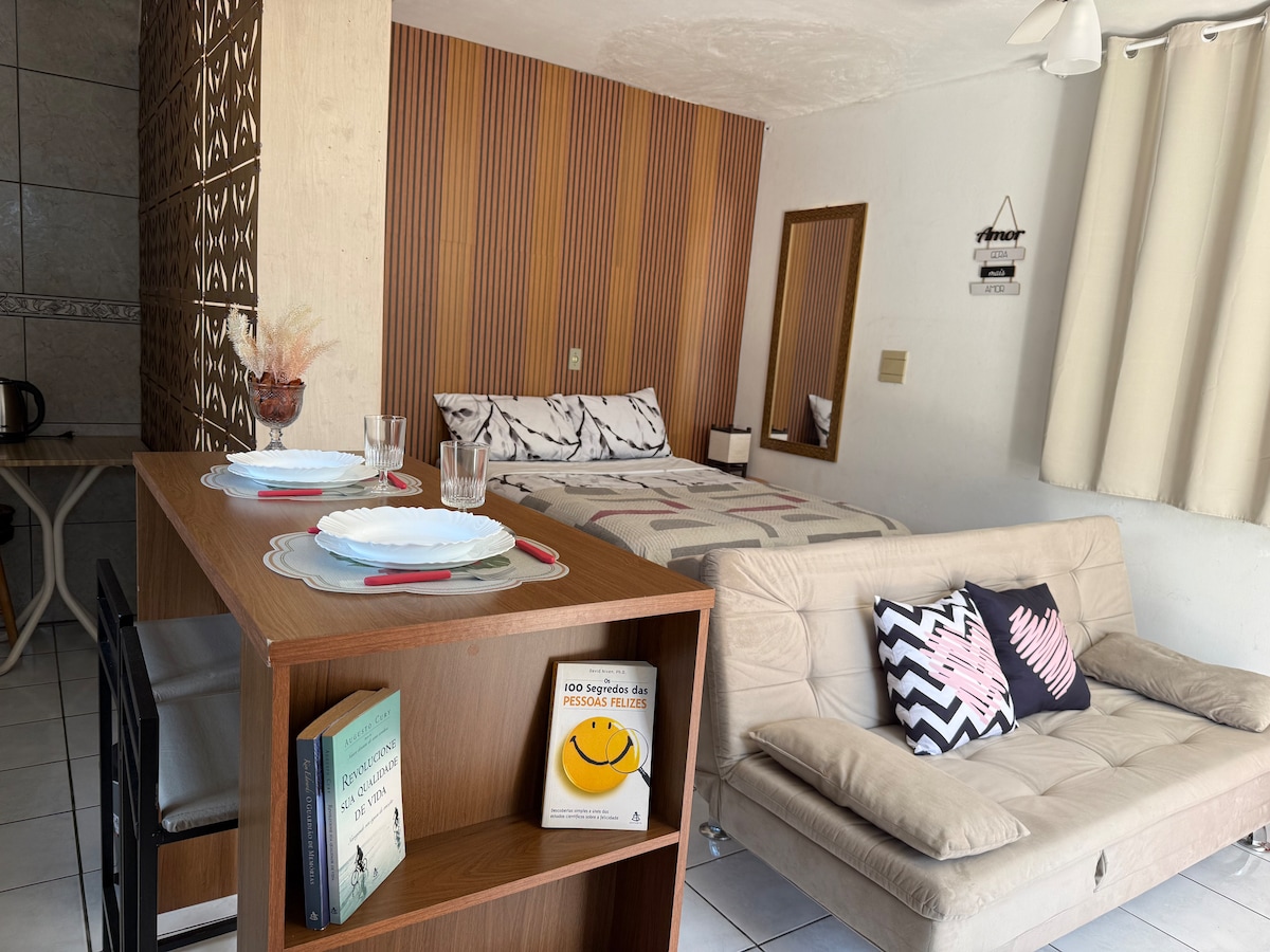 ¡Reserva INMEDIATAMENTE! Todas las fechas disponibles en el calendario están DISPONIBLES. Disfruta de días tranquilos en la playa de Imbé en este acogedor y moderno kitnet, ideal para parejas o viajeros que buscan comodidad y practicidad. El espacio está completo y bien equipado, con cama doble, sofá cama, aire acondicionado, cocina funcional con utensilios básicos, baño privado y cerradura electrónica para un registro de entrada fácil y seguro. El alojamiento tiene wifi, Smart TV y una plaza de aparcamiento rotativa.