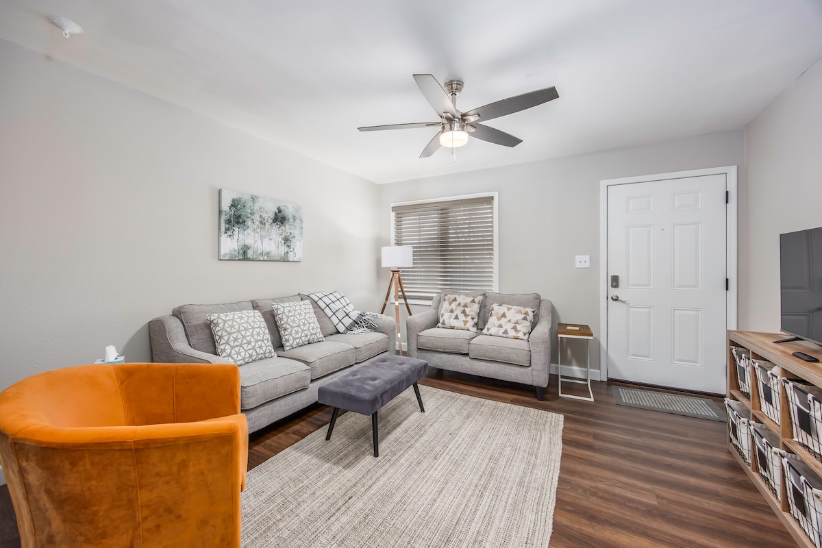 Relájate con toda la familia en este alojamiento tranquilo. Estas casas de 3 camas y 2 baños están fuera de los límites de la ciudad, ¡pero cerca de todo! Se incluye todo lo que necesitarás para tu estadía. La piscina por encima del suelo está abierta durante el verano. Los 3 dormitorios tendrán capacidad para 6 personas cómodamente. Un maestro con una cama tamaño queen, baño de 3/4 y salida privada a la terraza y al área de baño. El segundo dormitorio tiene una cama de tamaño completo con capacidad para 2 personas. El tercer dormitorio tiene una cama de día doble con una cama nido doble debajo, por lo que dormirás 2.