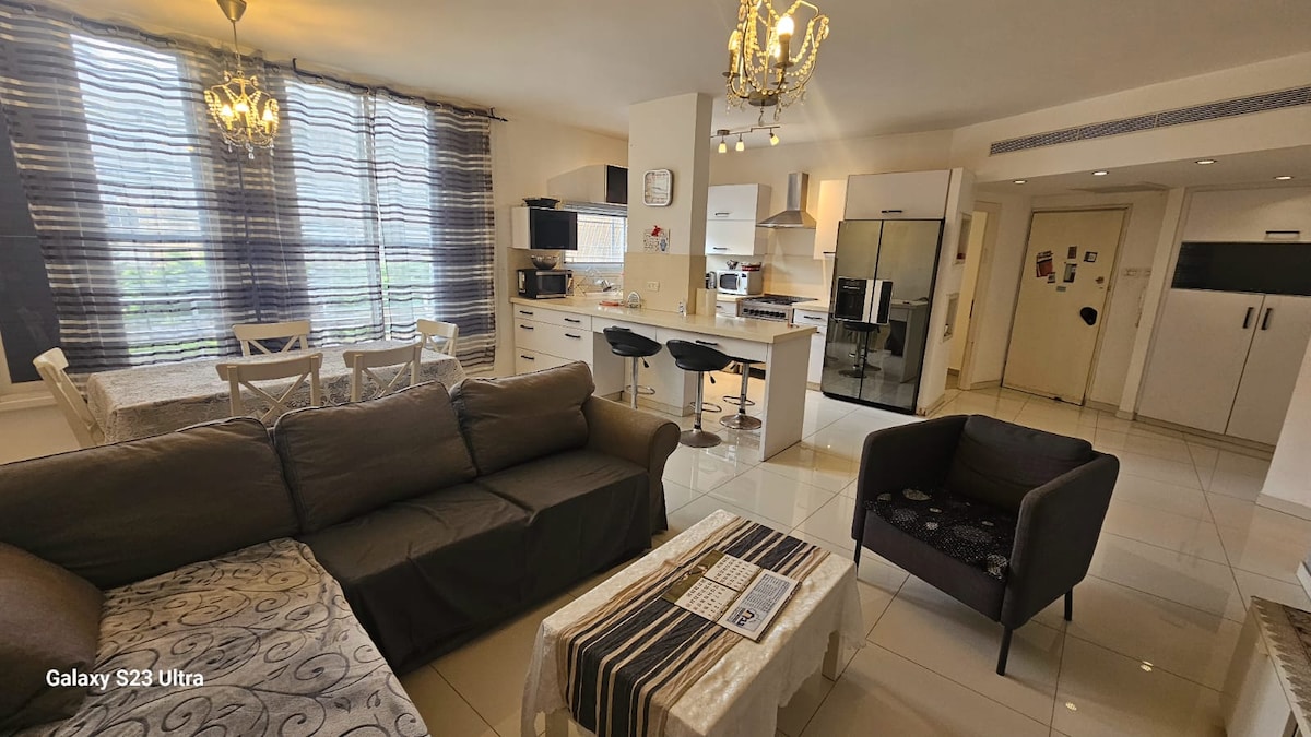 Hola chicos, nos entusiasma mucho presentarles nuestro impresionante apartamento enůa. Ubicación perfecta: ¡a solo 5 minutos caminando del centro de la ciudad, a 2 minutos caminando de la playa! Con una gran vista al balcón (desde el piso 12) y una amplia sala de estar abierta. El departamento tiene 3 dormitorios, uno principal con baño propio y otros 3 con camas individuales en cada uno. Echa un vistazo a las fotos y no dudes en ponerte en contacto con nosotros para obtener más información (: Por cierto, el lugar es totalmente adecuado para las personas de Shomer Shabat.