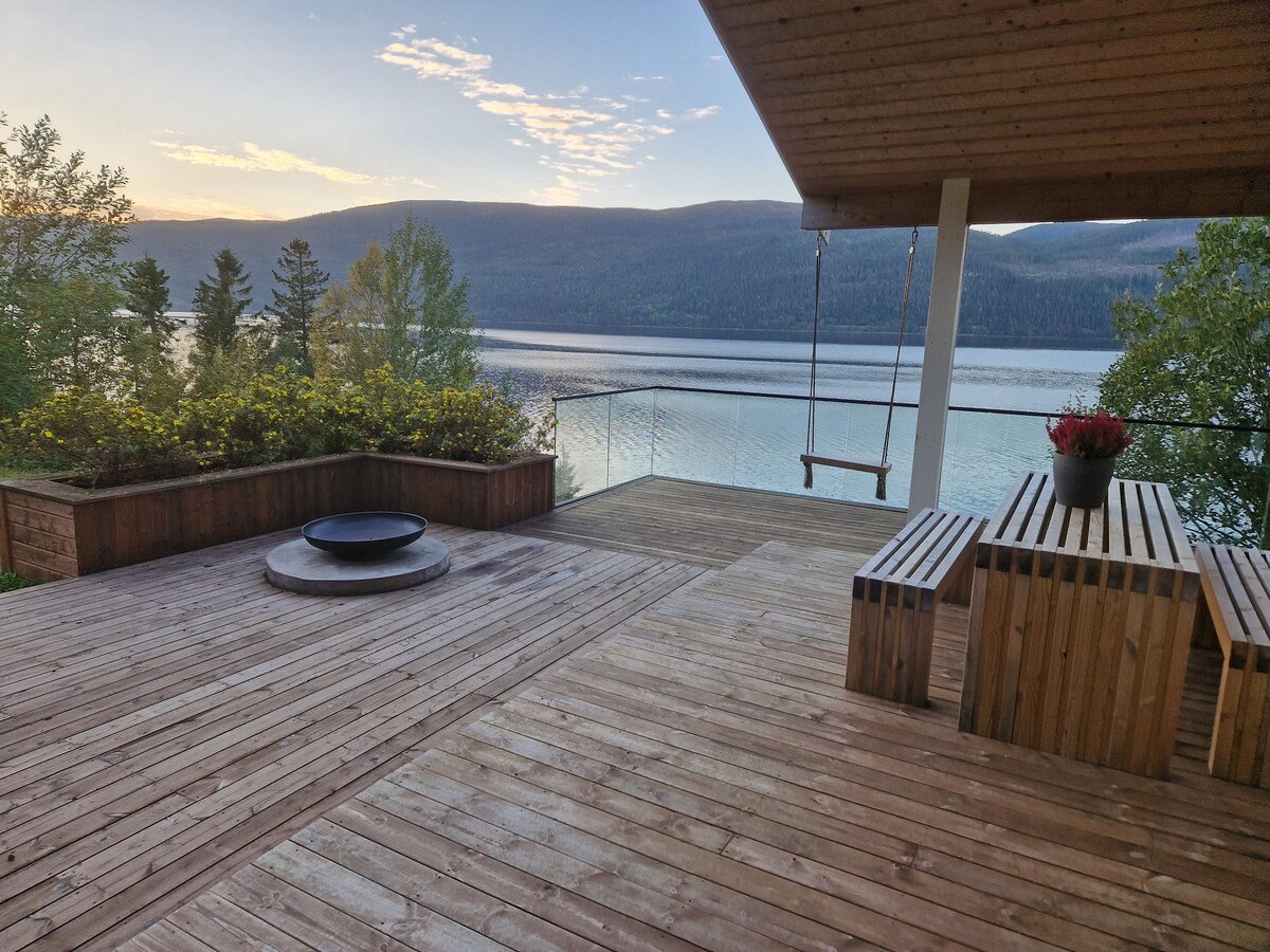 Moderna cabaña en el campo de cabaña rocosa con piscina en contracorriente. Cabaña en la primera fila al mar. Vista increíble. La cabaña está ubicada a unos 100 metros del fiordo Beitstad con playas , rocas y puerto deportivo. Marina con escalera de baño y ducha exterior. Sol desde la mañana hasta la noche, con hermosas puestas de sol sobre Follaheia. Zona protegida con asientos. - Acceso a 2 kayaks a pedido. - Posibilidad de alquilar un barco de 14 pies con un motor fueraborda de 5 CV. Alquila por una tarifa adicional. - Piscina climatizada.