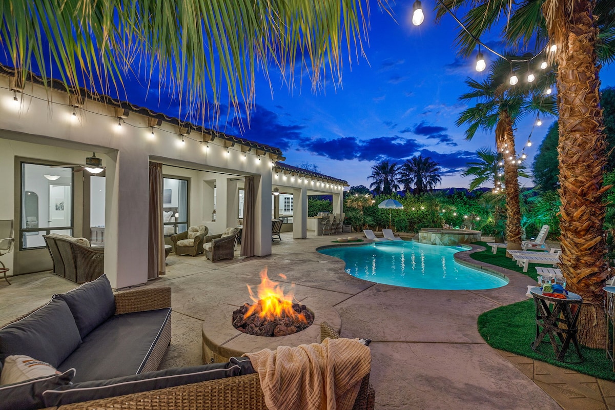 Una lujosa casa de Indio que ofrece la base perfecta para descubrir el desierto de California. Con una piscina privada de agua salada, un jacuzzi con chorros, un pozo para encender una hoguera, una cocina grande, wifi de alta velocidad y televisores inteligentes, este es un lugar ideal para familias, asistentes al Coachella y golfistas que buscan explorar increíbles campos de golf cercanos. A 7 minutos en coche del campo de golf Rancho La Quinta. A 8 minutos en coche del Empire Polo Club. A 9 minutos en coche de Coachella. ¡Experimenta Indio con nosotros y obtén más información a continuación!