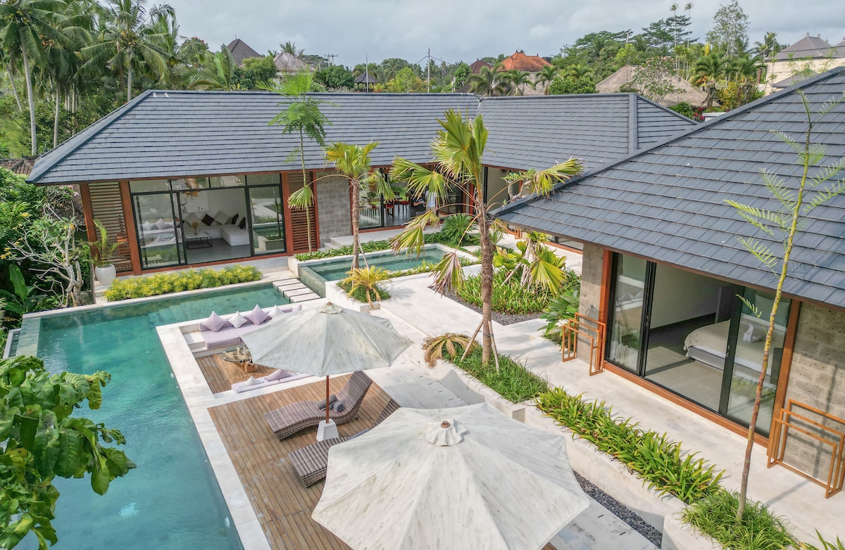 Nueva villa de 4 dormitorios con piscina infinita en el centro de Ubud