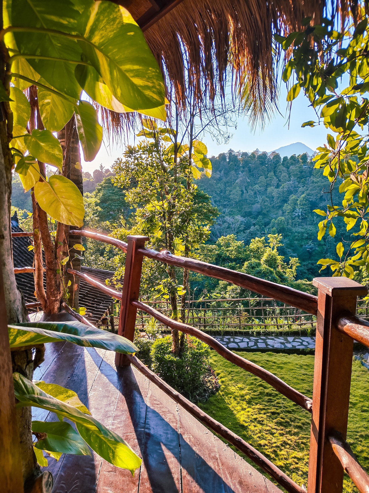 Disfruta de Bali desde las alturas en la villa de bambú The Avana Treehouse. Esta villa de bambú única en la vida se encuentra a 15 metros de altura entre los árboles de clavo en el borde de un acantilado. Disfrutar de la vista desde cualquiera de las zonas de 3 pisos te dejará relajado y con la sensación de que estás flotando en el aire. Debajo de la casa del árbol flotante hay amplios y exuberantes campos de arroz a lo largo del río Ayung que se encuentran con las montañas. Puedes ver el volcán Agung a la izquierda y el océano Índico a la derecha.