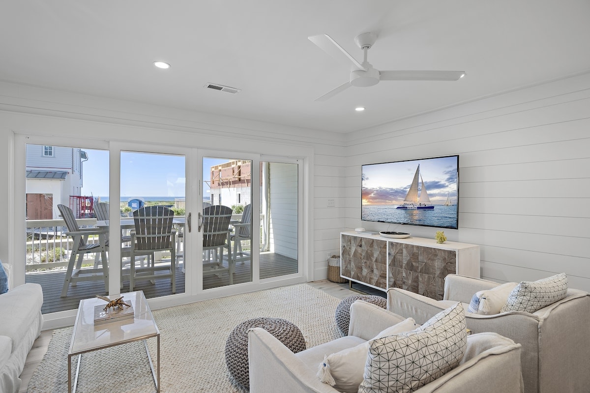 Ubicada entre Rosemary y Alys Beach en 30A, justo enfrente del acceso privado a la playa (a 2 minutos a pie de la arena, ¡nunca más esperes el tranvía!) con la gran piscina de la laguna de Seacrest a solo unos pasos. Casa grande y espaciosa de 4 dormitorios y 4 baños con abundante luz solar natural y recientemente renovada con un diseño clásico de elegancia costera. Disfruta de vistas al mar, café al amanecer y cócteles al atardecer en la gran terraza al aire libre del tercer piso con cómodos asientos al aire libre y bar. ¡4 bicicletas gratuitas incluidas!