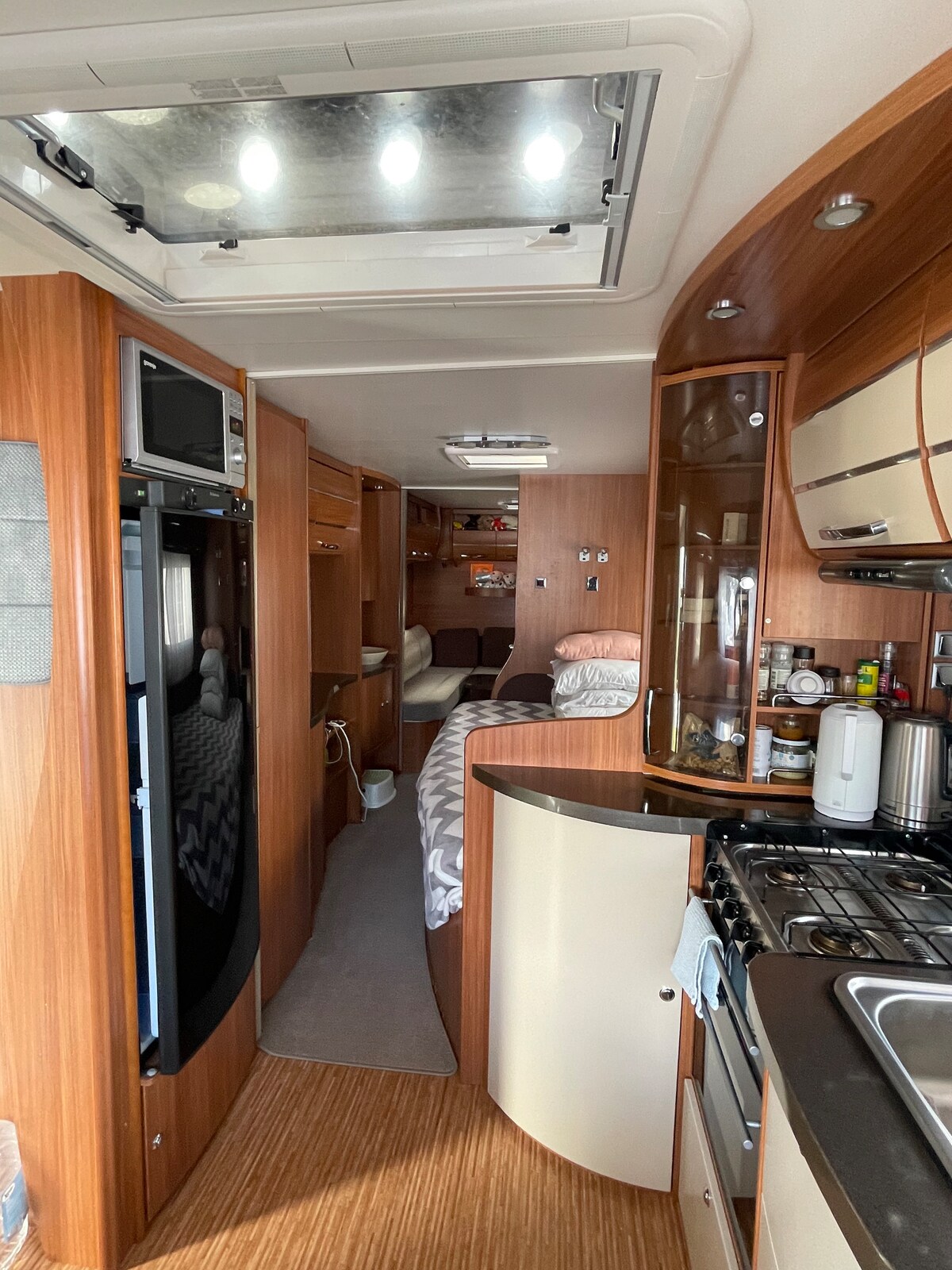 Relativt stor campingvogn med spikertelt. Perfekt vinterstid for alpint, ski inn/ut Eget barnerom innerst i vogna, dobbeltseng i midten og spikertelt med sovesofa. Spikertelt fungerer som stue. Sittegruppe ute på platting foran vogna. Bålplass med bålpanne usjenert bak vogna. Meget kort vei (20 meter) til sanitærbygg med dusj, toaletter, badstu (kunn i helgene) vann, felles kjøkken, vaskemaskin, tørektrommel ++