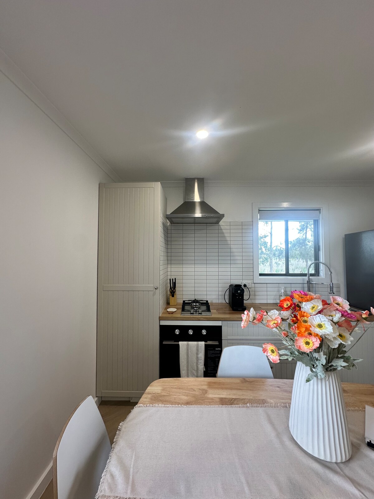 Welcome to The Pickers Hut, a beautifully restored 1950s orchard workers cabin renovated by the JW SP Orchards. Nestled in the heart of an 80-acre working orchard, situated 65 meters from the main homestead, this hideaway offers a peaceful and authentic country experience. Step outside your door and find yourself surrounded by orchard trees. Whether you're here during harvest season to pick fresh fruit or visiting in spring to witness the stunning blossoms, the orchard has something to offer.