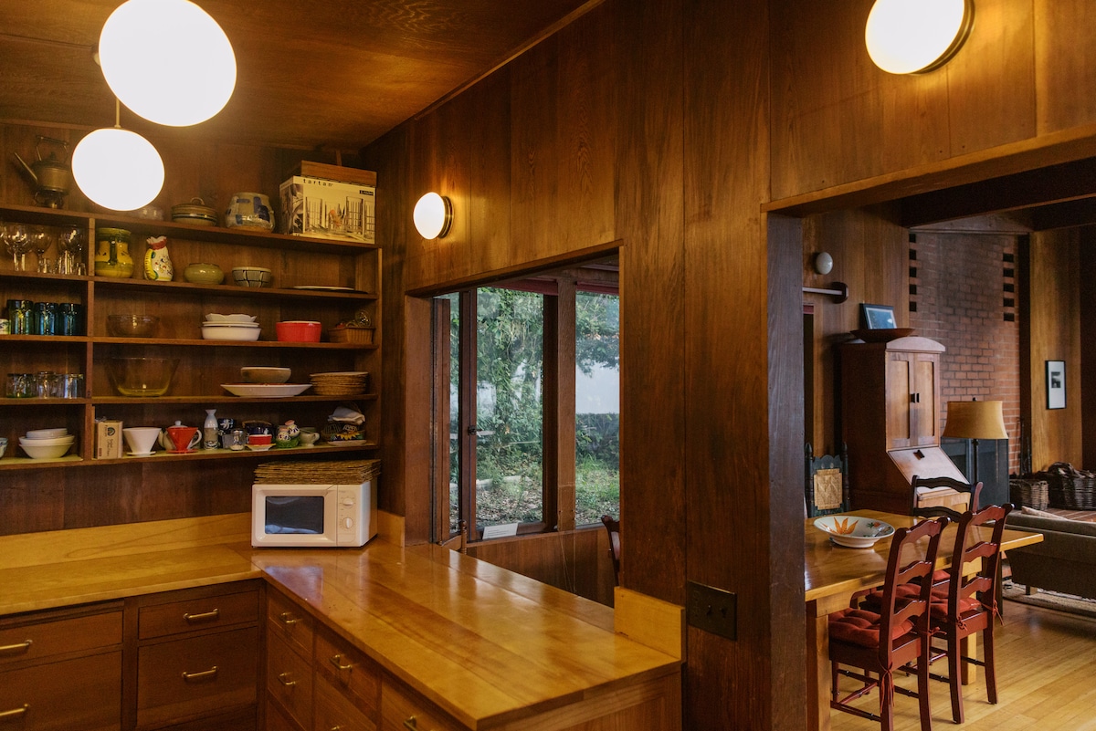 Verdaderamente una casa única hecha a mano, alimentada con energía solar de materiales locales llena de arte y artesanía de artistas locales y tesoros que hemos recogido de todo el mundo. Descrita por los huéspedes como «vintage asiática», esta soleada casa se encuentra encima de un arroyo durante todo el año y está rodeada de jardines maduros y un bosque de laurel, roble y abeto. Aproximadamente a una hora de San Francisco y los valles de Sonoma y Napa, a 1,5 millas de Point Reyes Station y a 2 millas del Centro de Visitantes de Point Reyes National Seashore y del Área Recreativa Nacional Golden Gate. Accede fácilmente a playas, vías fluviales y parques para practicar senderismo, natación, surf, kayak, surf de remo, ciclismo de montaña y todo lo que West Marin tiene para ofrecer. O simplemente disfruta relajándote en este cómodo y hermoso entorno. Pasea hasta el mercado de Inverness Park y la sala de barriles al final de la calle y disfruta de algunos de los mejores platos y bebidas de la zona con un ambiente muy local. Al entrar en la planta superior encontrarás un gran espacio de salón/comedor/cocina construido con enormes vigas, amplios suelos de abeto de madera molida en la propiedad, un banco de ventanas con vistas panorámicas del bosque y una gran ventana de vidrio tintado. Una cocina totalmente equipada y una despensa surtida te permiten cocinar la generosidad de los agricultores y proveedores de Point Reyes en nuestra estufa vintage O'Keefe y Merritt. Hay lavavajillas, microondas, tostadora, batidora, cafetera y licuadora. Una mesa de comedor balinesa de madera de coco y asientos de bambú tigre para 6. La sala de estar ofrece un cómodo sofá cama con colchón de espuma viscoelástica. Hay wifi y un televisor inteligente con Netflix, Hulu Plus y Amazon Prime. O disfruta de cualquiera de los DVD de nuestra pequeña biblioteca. Un sintonizador estéreo con un cable auxiliar te permite transmitir música desde tu dispositivo equipado con un conector de 2,5 mm. Una terraza junto a la sala de estar tiene una mesa, sillas y una pequeña barbacoa de gas. También en la planta principal hay un solárium con cristal del suelo al techo y un techo de cristal, muebles de bambú balinés, mesa de desayuno y una terraza lateral. El baño tiene una bañera con patas y ducha. Hay calefacción central con el termostato ubicado en la sala de estar. En la planta baja hay un dormitorio grande y lujoso con alfombra, rodeado de paredes de roca, enormes vigas, una cama tamaño queen, zona de estar, TV de pantalla plana y una estufa de leña. También hay un dormitorio pequeño y luminoso con una cama individual y una pequeña terraza adjunta. Una antesala entre los dormitorios contiene un lavabo y conduce a una zona privada con paredes de roca y suelo de baldosas de pizarra con una ducha exterior de doble cabezal y bañera de hidromasaje. Hay una lavandería para tu uso con lavadora de tamaño completo, secadora, fregadero y almacenamiento de ropa de cama. En el exterior encontrarás un patio de piedra con mesa, sillas y sombrilla. Hay una cochera para 2 coches. Nuestro hijo, David, vive en la propiedad en una pequeña cabaña separada y sirve como gerente y cuidador. Lo más probable es que sea tu persona de contacto aquí en Airbnb y durante toda tu estancia. Lee las normas de la casa en este anuncio y el manual de la casa en el escritorio de la entrada cuando llegues.