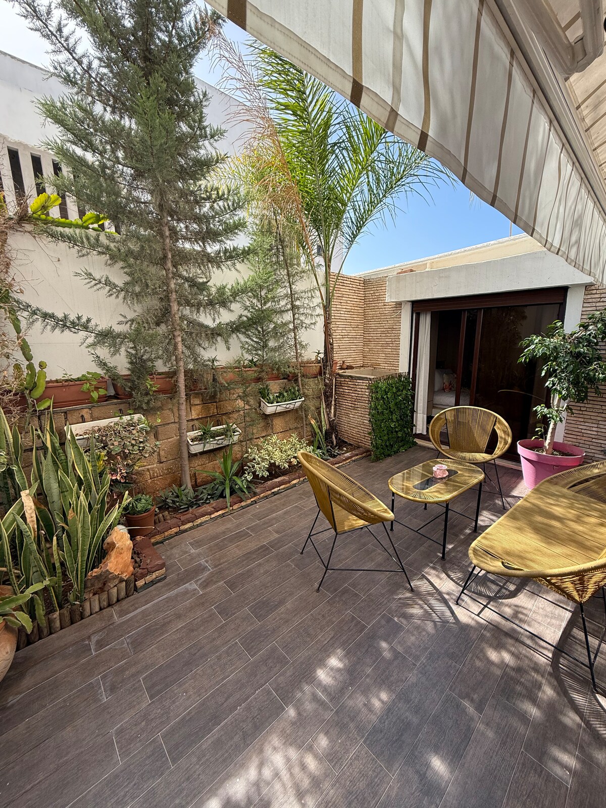 Agadir Talborjt Ce superbe Riad, en centre ville,à 15mn de marche de la plage,vous accueille dans un style marocain épuré et moderne Cette propriété,entièrement rénovée,offre une conception haut de gamme, unique sur Agadir! Vous entrez dans un jardin d’où monte un puit de lumière jusqu’aux 2 étages et la terrasse,dans la pure tradition des Riads Marocains Le jardin intérieur est un salon de repos avec télévision câblée et Netflix avec sofas,fauteuils et poufs marocain.Un vrai salon détente.
