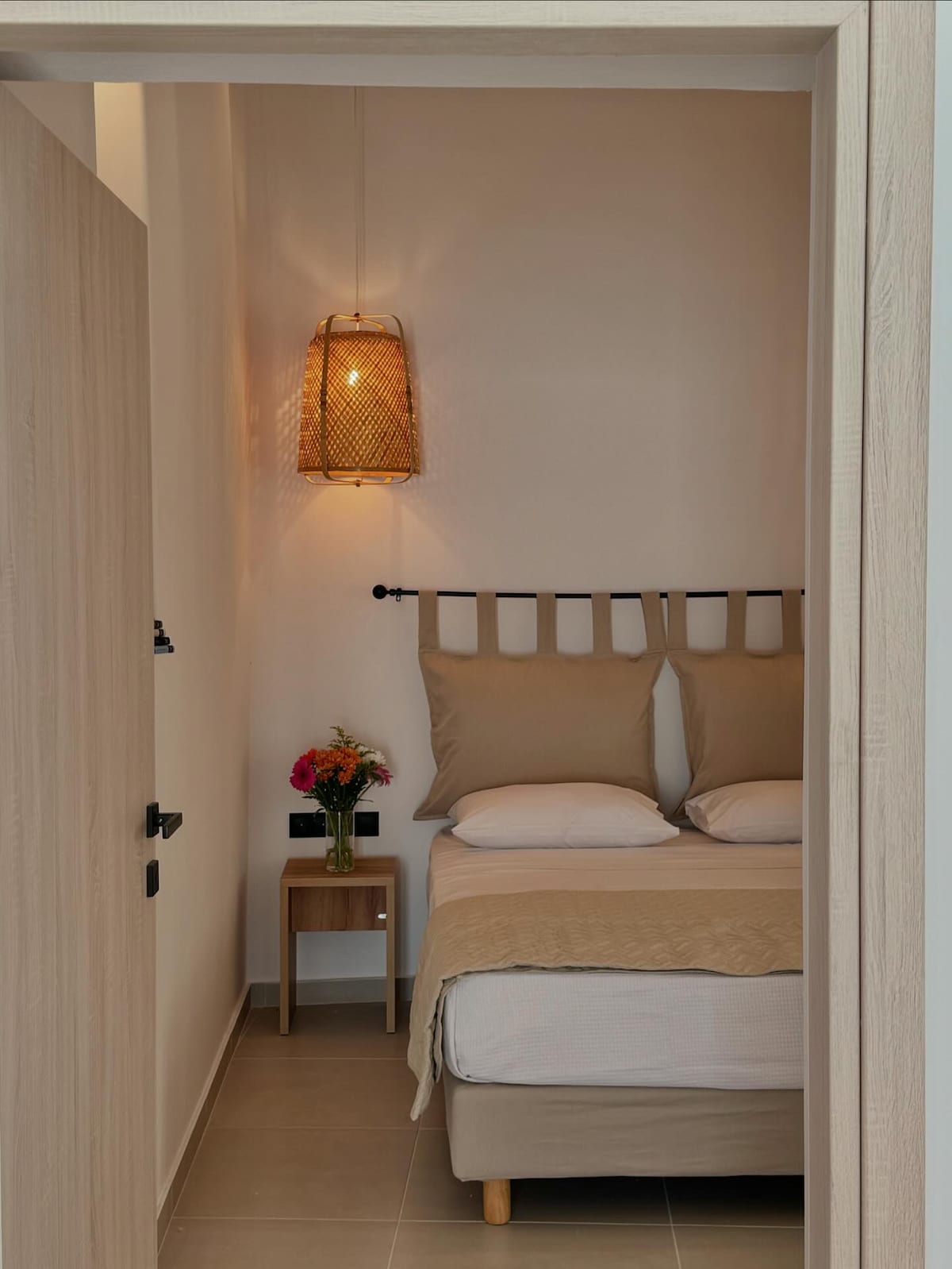 Crea momentos inolvidables con familiares o amigos en tu espaciosa zona exterior con jacuzzi o relájate en tu sala de estar interior. Suite de un dormitorio de 45 metros cuadrados con capacidad para un máximo de 5 huéspedes. Cuenta con una cama tamaño queen, 3 camas individuales de piedra de diseño, baño con ducha de efecto lluvia, cocina equipada y 2 balcones. Smart TV y wifi de alta velocidad en todas las áreas. La distancia desde el puerto de Íos es de 2 km, así como a la playa de Mylopotas. El casco antiguo de Ios está a solo 150 metros.