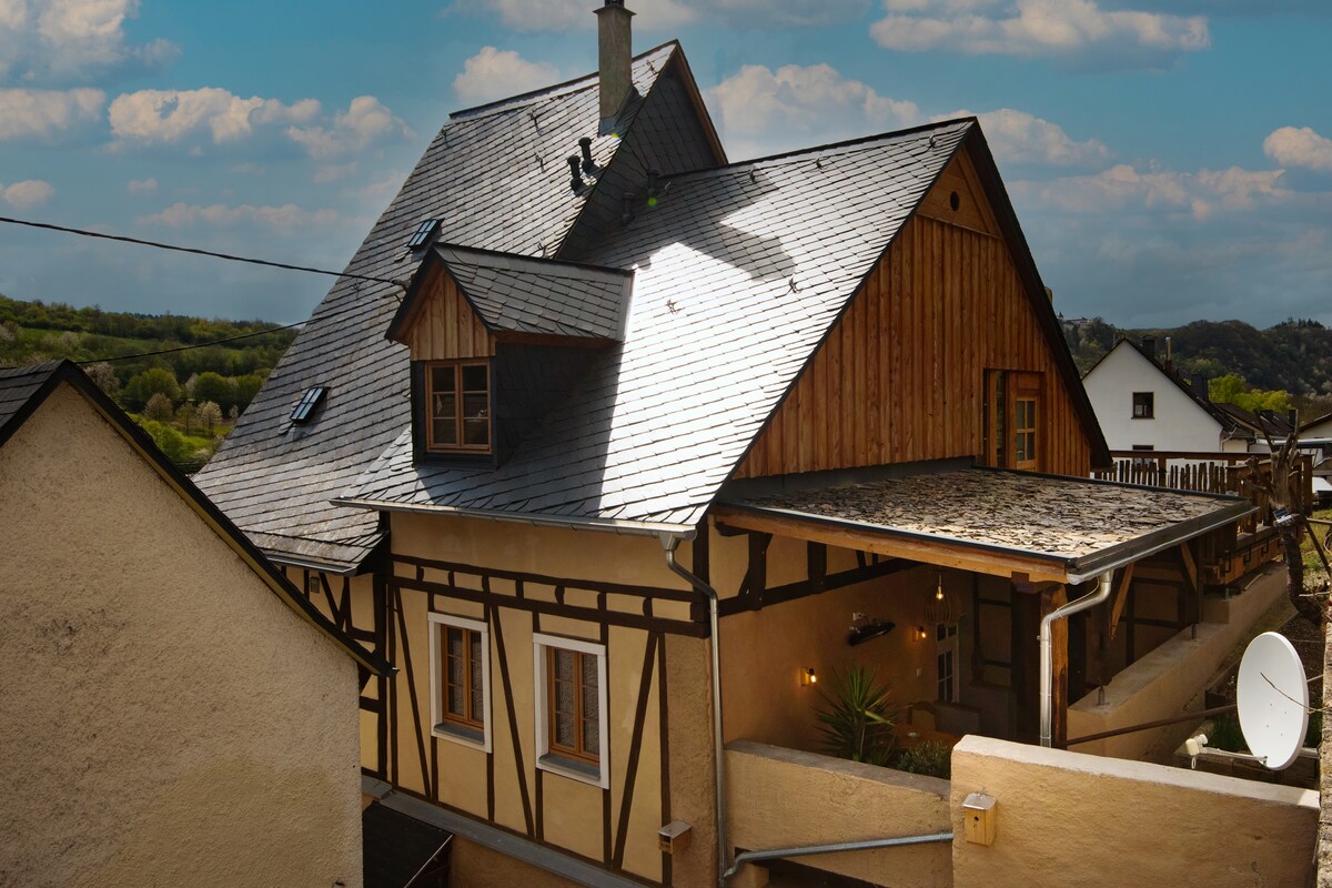 Relájate en tu pequeño refugio en el Mosela. Desde este maravilloso lugar en una tranquila calle lateral del pueblo de montaña Starkenburg puedes comenzar a hacer senderismo, ir a catas de vino, simplemente relajarte o trabajar de forma remota. Deja que la vista lejana y la naturaleza te inspiren. La antigua casa con entramado de madera ha sido completamente renovada ecológicamente y es simplemente acogedora, incluyendo una estufa de leña. Disponible (de pago) desayuno en la cafetería de enfrente, alquiler de bicicletas eléctricas, sauna panorámica, venta de vinos.
