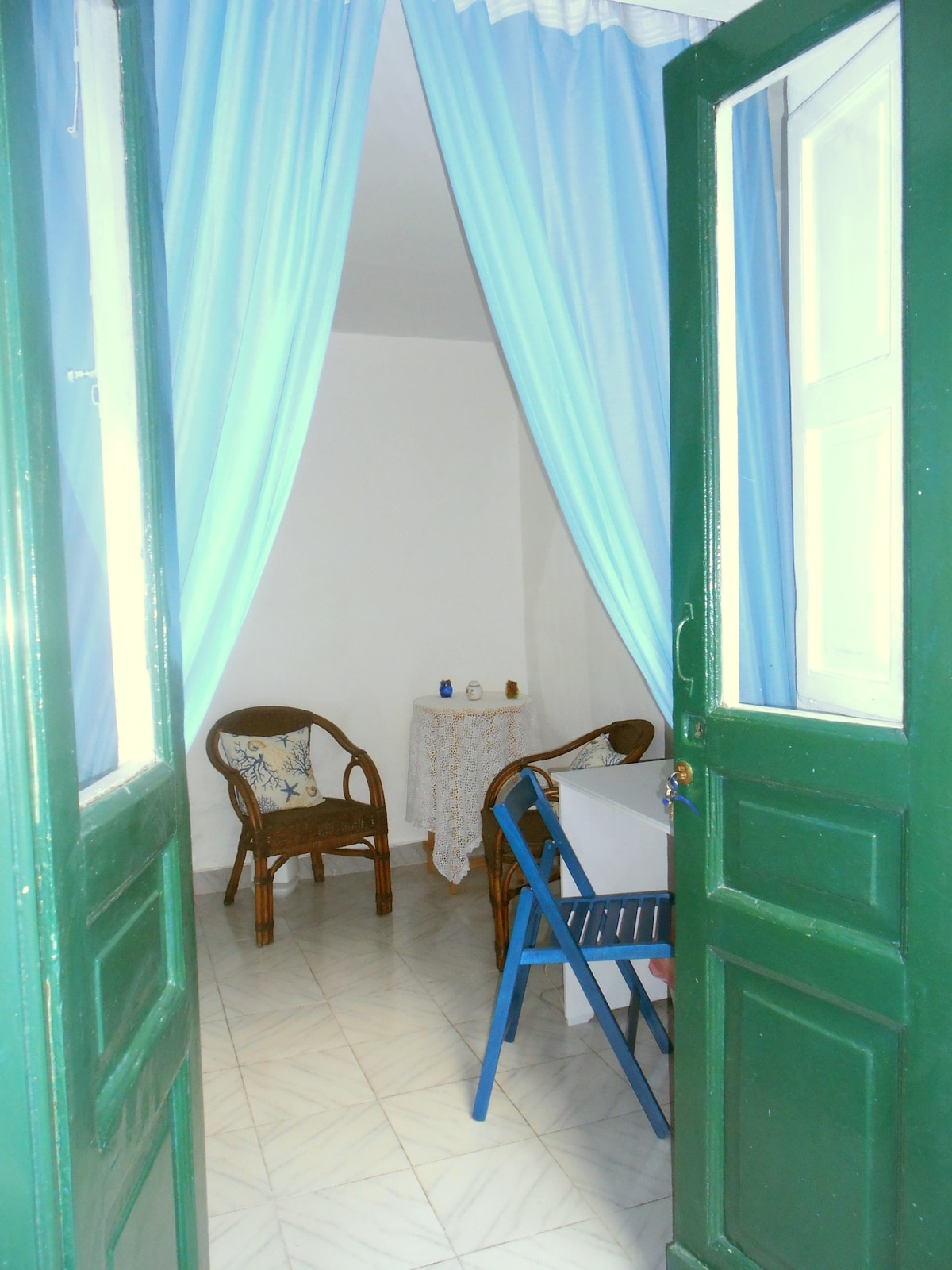 Una struttura affittacamere indipendente con ampio e luminoso bagno privato, patio esterno arredato. In stile mediterraneo, spaziosa e luminosa, situata a pochi passi dal centro di Sant'Angelo, in una posizione davvero privilegiata. Ogni camera è dotata di frigobar, macchina del caffè e una picca fornitura per le colazioni. Aria condizionata, Smart TV 43', internet wi-fi completano il comfort di ogni alloggio