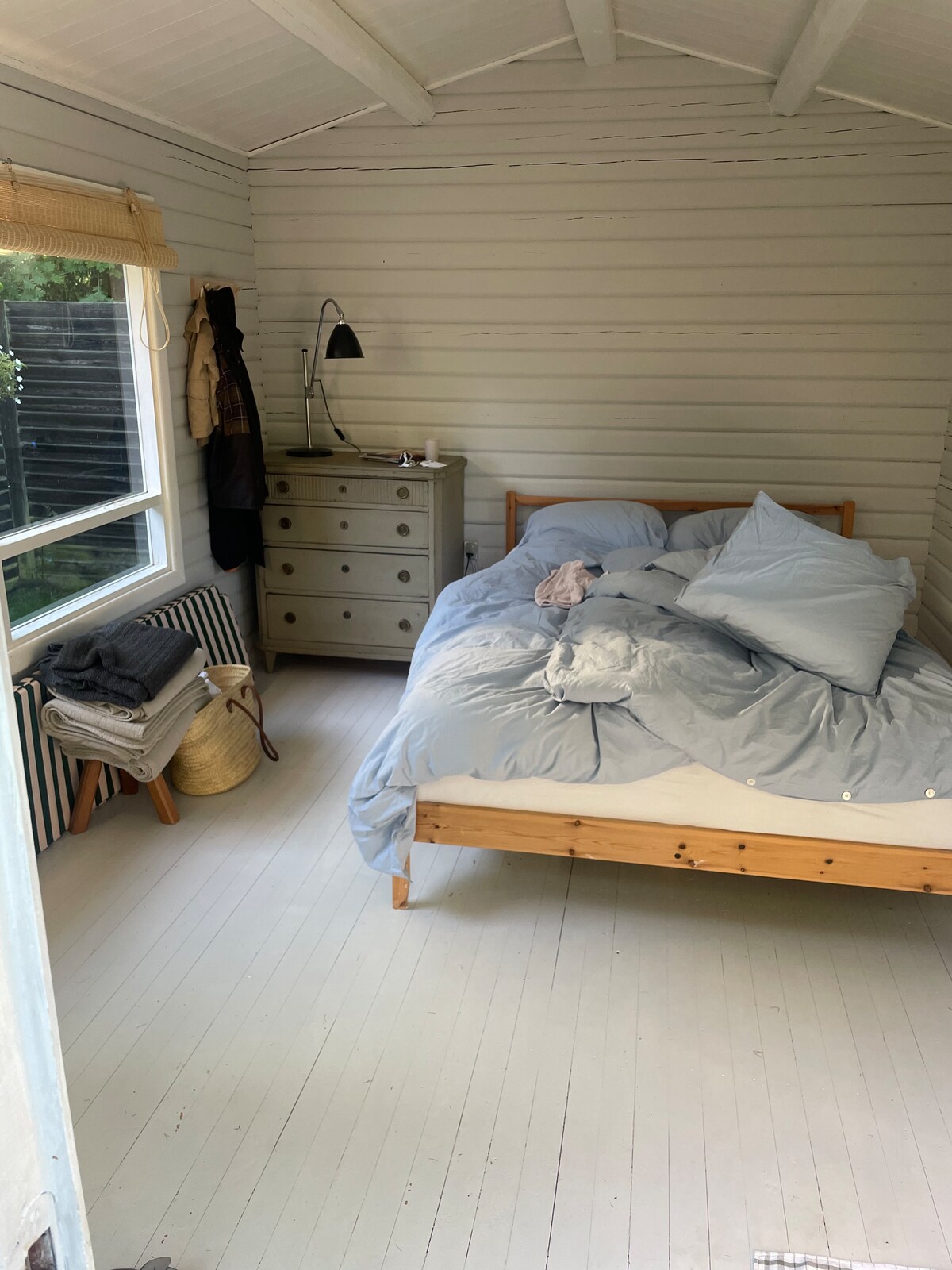 Renoveret retro-sommerhus med kunst, farver og komfort. Veludstyret køkken, udendørs bad, grill, bålplads og elbil-lader. 1 dejligt anneks med 180x200 cm dobbeltseng. Ingen wifi – kun ro, charme og nærvær. HAY-senge og Jensen-madrasser i alle rum. Beliggende ugeneret på stor grund tæt på én af Danmarks bedste strande.