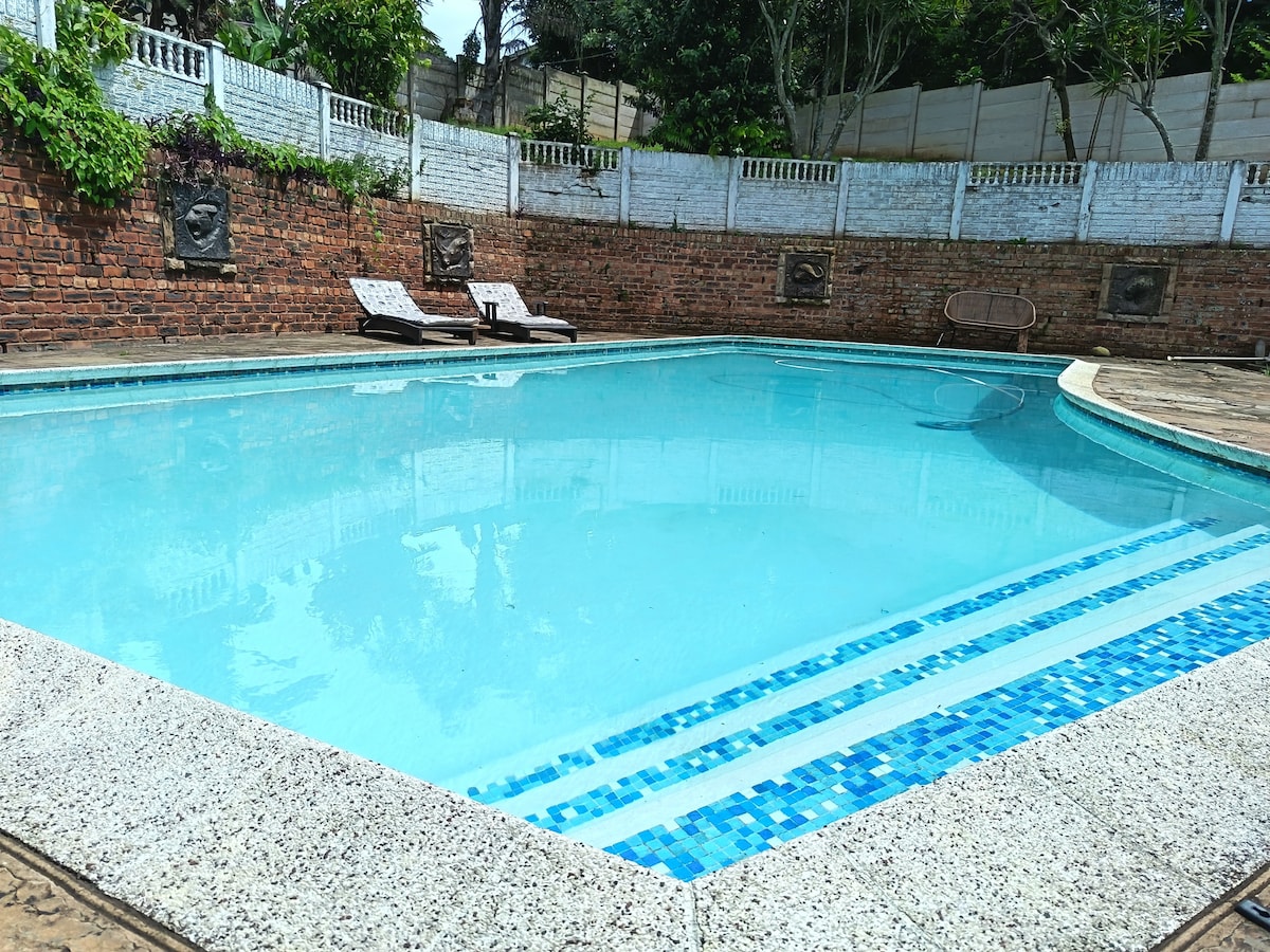 Esta casa autónoma es espaciosa, (66 metros cuadrados) tranquila y encantadora. Situado dentro del tranquilo y verde suburbio de Glenwood, con cafeterías, instalaciones de yoga/pilates y está cerca de servicios y tiendas. No está lejos de la playa y los grandes centros comerciales. La cabaña tiene una cama tamaño queen, aire acondicionado, ducha y baño en suite, cocina equipada, DSTV (todos los canales), wifi y estacionamiento seguro fuera de la calle. Ten en cuenta que hay DESCUENTOS PARA RESERVACIONES DE UNA SEMANA y UN MES.