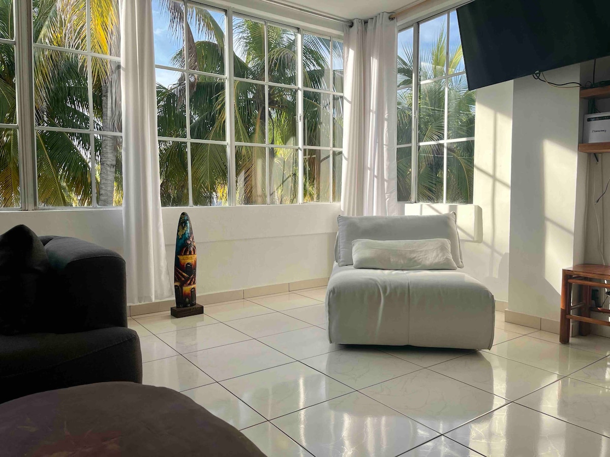 🌅Relájate: La habitacion cuenta con cortinas opacas, aire acondicionado y ropa de cama cómoda para un descanso reparador. 🍽️Cocina: Ideal para preparar tus comidas favoritascon estufa, microondas, cafefetera, utencilios y especias basicas. 🌊Área exterior: Acceso directo a la playa a menos de 30 pasos, prácticamente a tu puerta, alberca compartida y una regadera exterior. Perfecto para familias y grupos que buscan una experiencia costera inolvidable.