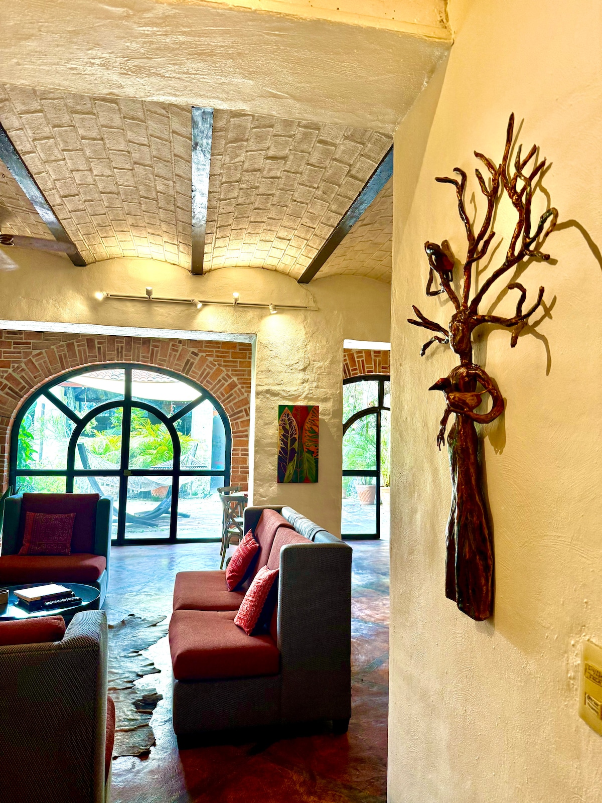 Designer Mexican villa offers a private solar-heated pool, lush garden, AC throughout, and a blend of traditional charm and modern comforts. Just blocks from Lake Chapala, the Malecón, the Plaza and steps from a nearby bar, shops, restaurants, and galleries. Relax in the pool, enjoy horses passing by, or festive parades. A peaceful retreat after exploring Ajijic and Lake Chapala. ☞ Private Pool | Garden | Patio ☞ Lake Access (5 min) | Concierge* ☞ 1 Bedroom w/ Ensuite | Fast WiFi 214 Mbps