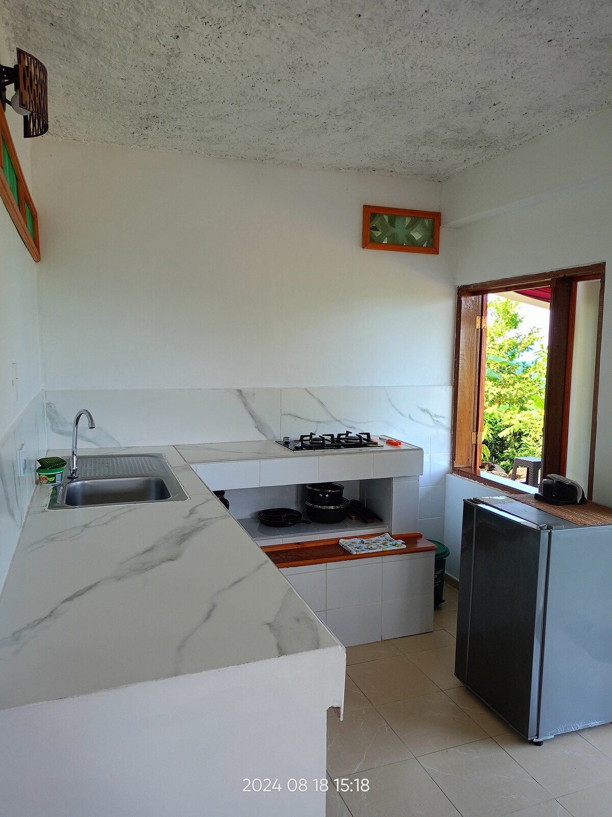 Wake up to the sound of the waves and enjoy breathtaking ocean views right from your private balcony. The apartment features a comfortable bedroom with a private bathroom, a fully equipped kitchen, and a chill open space perfect for enjoying the sea breeze. wood textures, and a laid-back atmosphere, this space invites you to slow down and feel the good island vibes. Come and experience authentic island living in a place made with love, surrounded by nature and the sea.