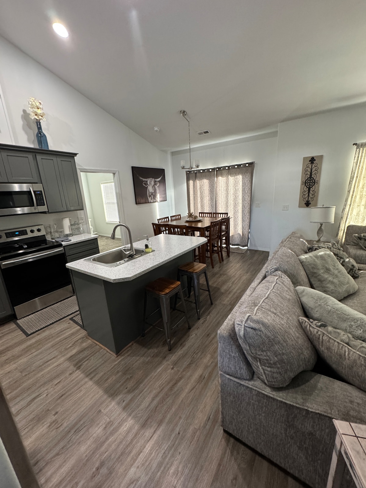 Welcome to our cozy, art-filled apartment—just one block from Grande Ronde Hospital, and a short walk to Eastern Oregon University, parks, playgrounds, and a community track. Children and pets are welcome! Enjoy a private daylight basement suite with its own entrance, offering comfort, privacy, and easy access. We’ve even added a bidet for your toosh! Our family lives upstairs, so you may hear footsteps and kids playing during the day. Offering returning guests discounts-just ask