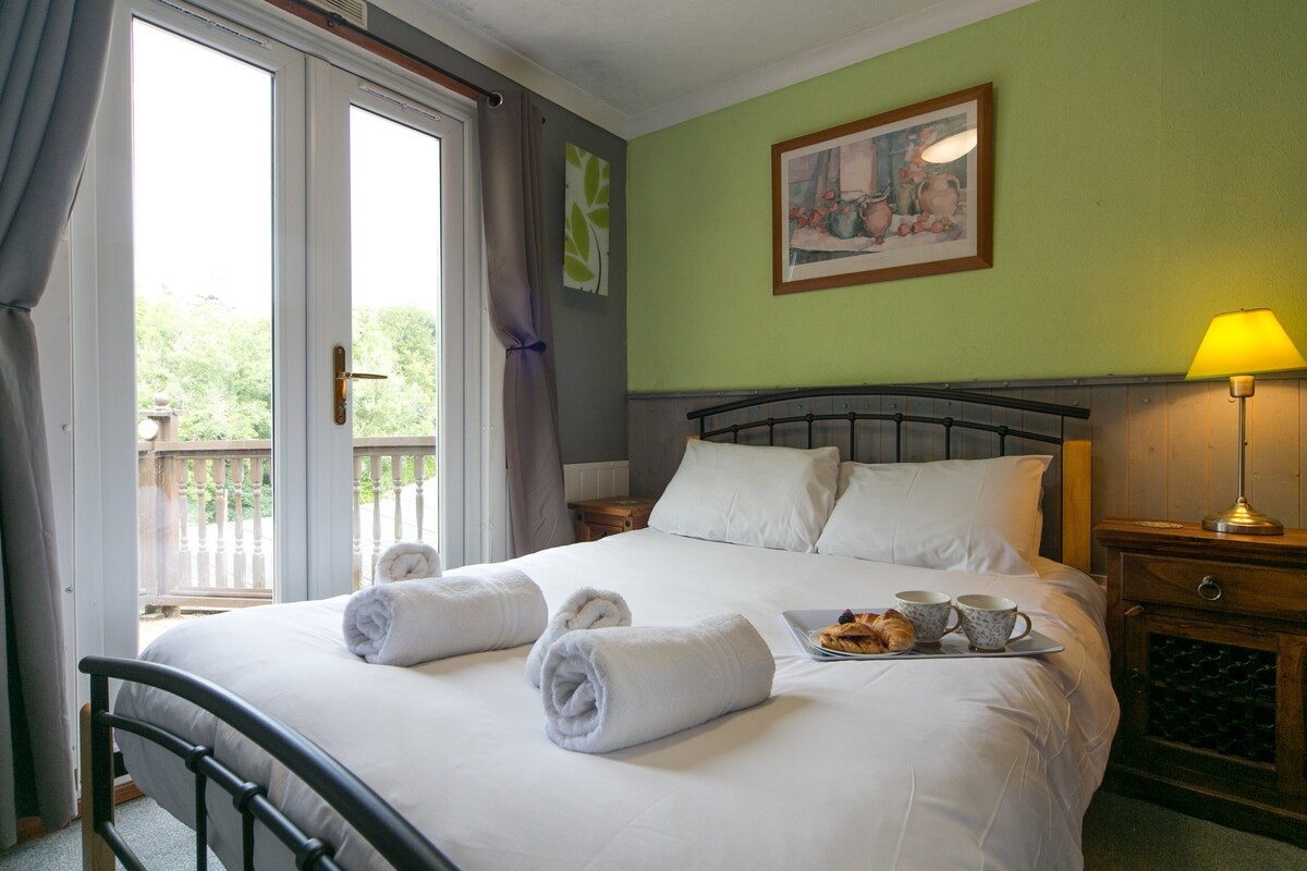 Esta cabaña de 2 dormitorios junto al río cuenta con un salón de planta abierta, 1 dormitorio doble y una habitación doble (toda la ropa de cama incluida), zona de terraza tranquila con vistas impresionantes del río Salmón, calefacción central, piscina comunitaria (abierta de finales de mayo a principios de septiembre), bar/restaurante y cafetería/tienda. Ubicado a 6 millas de Snowdonia. ¡Una bienvenida grande o 2 perros pequeños! Ten en cuenta que, debido a una pequeña colina y a unos 10 escalones, la cabaña no es apta para personas con dificultades para caminar.