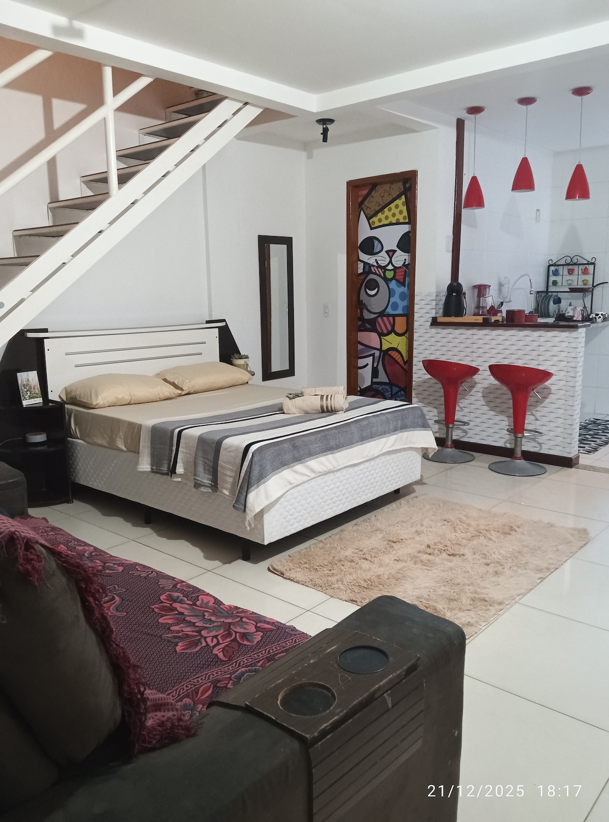 Estudio completo (46 m²), cómodo y acogedor. Con garaje. Barrio tranquilo, cerca de todo. Ideal para parejas o personas que viajan por trabajo, placer o estudio. Buena opción también para aquellos que quieren conocer las playas de la Costa Verde-RJ. Nuestro espacio está a 10 minutos (en coche) de la empresa siderúrgica Ternium, a 3 minutos de CEFET y SENAI, cerca de la estación de autobuses de Itaguaí, mercados, gimnasios... En coche, está a 20 minutos de la playa de Itacuruçá, punto de partida para playas e islas.
