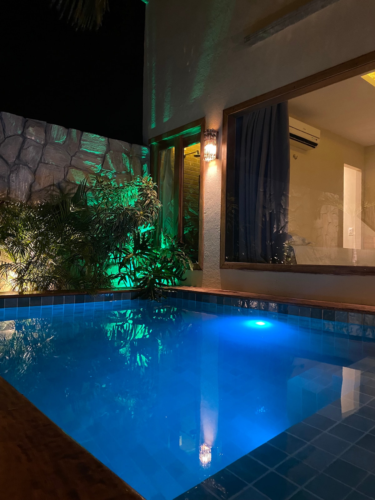 +Área externa -Piscina privativa -Espaço para fogueira -Quadra de vôlei -Churrasqueira -Deck estilo grego -Cozinha externa com churrasqueira -Mesas amplas para refeições ao ar livre -Banheiros externos de apoio -fogueira para lual +A casa -1 suíte principal -3 suítes (capacidade para até 3 pessoas cada) -Cozinha completa equipada -Sala de estar com TV -Sala de jantar espaçosa Nosso espaço foi pensado para conforto, inspirado em Tulum sem perder a essência do Nordeste, unindo o melhor.