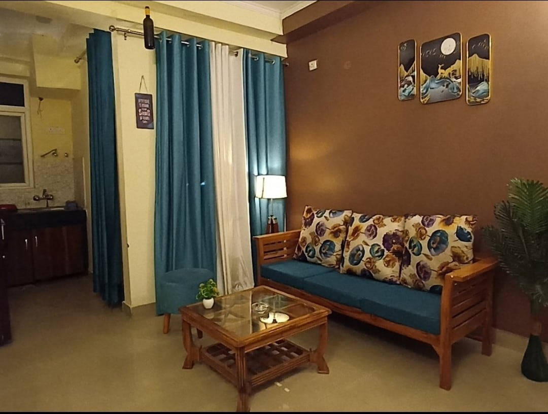 El primer apartamento de 2 Bhk que cumple con todos los requisitos ✨ - 2 dormitorios ( dormitorio principal, segundo dormitorio). - Dos camas tamaño king. - Una amplia sala de estar con una cómoda disposición de asientos. - 2 baños ( 1 en cada uno de los dormitorios). - Cocina pequeña (con todos los utensilios básicos de cocina disponibles y servicios abastecidos, es el lugar perfecto para preparar tus comidas favoritas) - Una zona de balcón compartido que conecta con el apartamento, que puede ser el espacio perfecto para tus paseos nocturnos. ¡Reserva ahora!