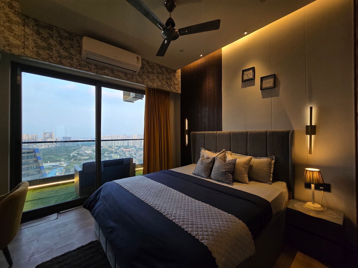 Este es un elegante apartamento completo de 2 habitaciones con aire acondicionado, con RESERVA DE ENERGÍA DE CA en la red y el generador y un purificador de aire, que tiene 2 dormitorios, 2 baños, una cocina funcional, espaciosa y encantadora, 3 patios y zona de lavandería. Puedes relajarte en este espacio tranquilo y elegante. Seguridad las 24 horas, los 7 días de la semana. Buena para la estancia familiar y la seguridad de los niños, ya que hemos proporcionado red en los balcones. Lugar céntrico. La sociedad tiene su propio complejo comercial. Todas las instalaciones cerca. También con Smart TV y WiFi de alta velocidad de 100 Mbps.