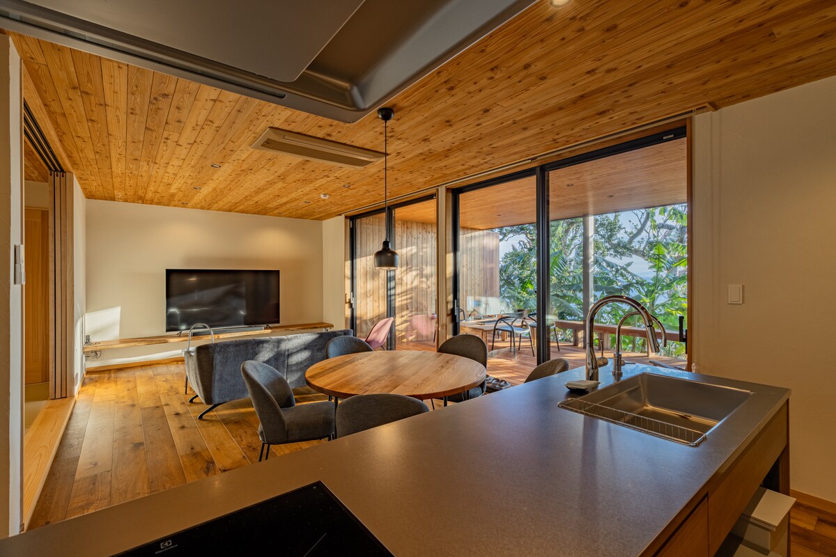 Experimenta los extraordinarios sonidos de la naturaleza en una casa de campo con vistas al mar. Hay una casa de campo en el parque nacional de Tanushi, pasando por el punto de poder Heart Cave Ryugu (modelo para "Ponyo" de Ghibli), y la playa de Tanushi. Al entrar por la puerta principal de la cabaña, el verde de los árboles y la luz brillante del océano saltan en tus ojos.El salón de 20 tatamis con techo alto tiene un sofá, cocina, loft y chimenea en invierno, y es un espacio relajante para familias y amigos. Cuando sales por la ventana a la terraza, puedes ver el cielo y el mar extendiéndose desde el mar.Puedes sentir lujosamente la cómoda brisa y el cielo que fluye lentamente en el jacuzzi y la hamaca. Desde la terraza, sube un tramo más de escaleras hasta la plataforma de observación.Solo hay naturaleza hasta donde alcanza la vista.El paisaje impresionante se extiende. El flujo relajado del mar y los barcos de pesca en Izu, puedes escuchar el sonido de los pájaros en el arroyo.Es una gran desintoxicación. Luego, baja un piso para disfrutar de una barbacoa de carbón mientras escuchas el murmullo del río en el bosque.Fue delicioso, divertido y un gran recuerdo. Por la noche, el cielo estrellado es deslumbrante, y si hace buen tiempo, ¡puedes ver estrellas fugaces!Puedes disfrutar de la belleza del cielo.