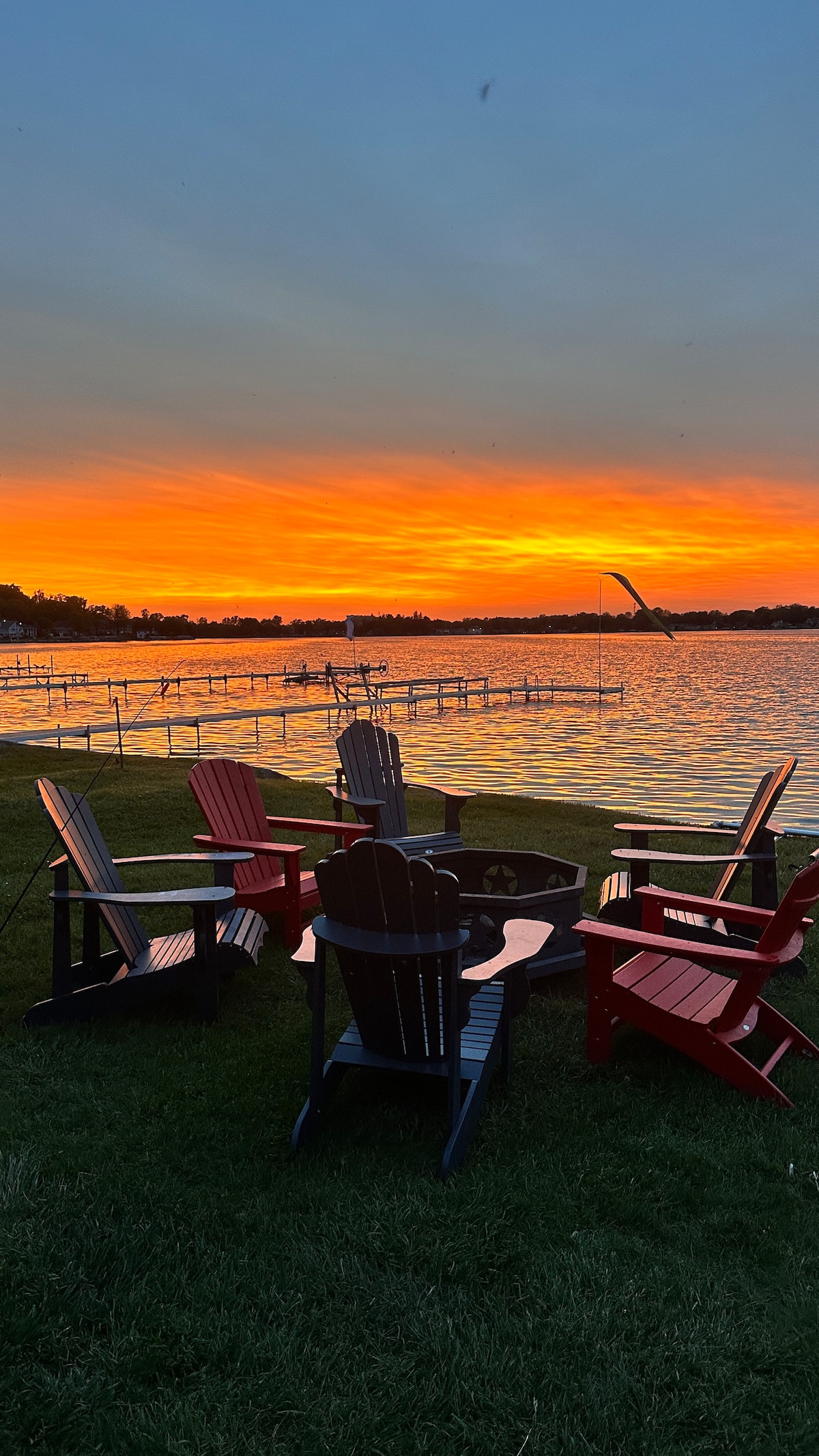 Patio con fogata: refugio frente al lago en Michigan