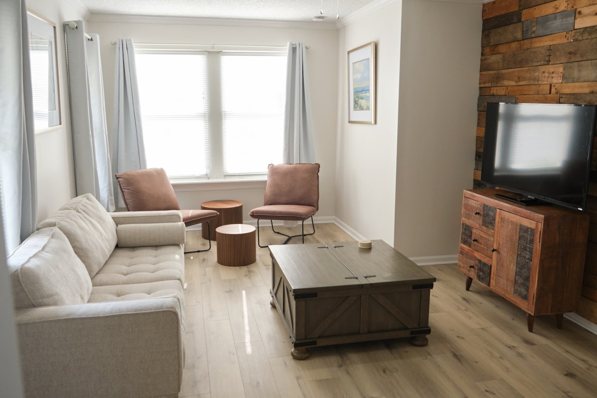¡A 30 segundos a pie de la playa! ¡Esta moderna casa de playa es exactamente la escapada que necesitas! A 15 minutos a pie del centro de JAX Beach y de los restaurantes de Beaches Town Center, pero en un barrio tranquilo y con acceso a la parte menos concurrida de las playas a 1 manzana de distancia. Totalmente reformado con una decoración lujosa, moderna y elegante. Entrada privada a la planta superior de un dúplex de playa con balcón privado y patio con ducha exterior. Sin espacio compartido. 2 plazas de aparcamiento dedicadas. Se admiten perros, NO gatos. Ya no ofrecemos fogata por seguridad.