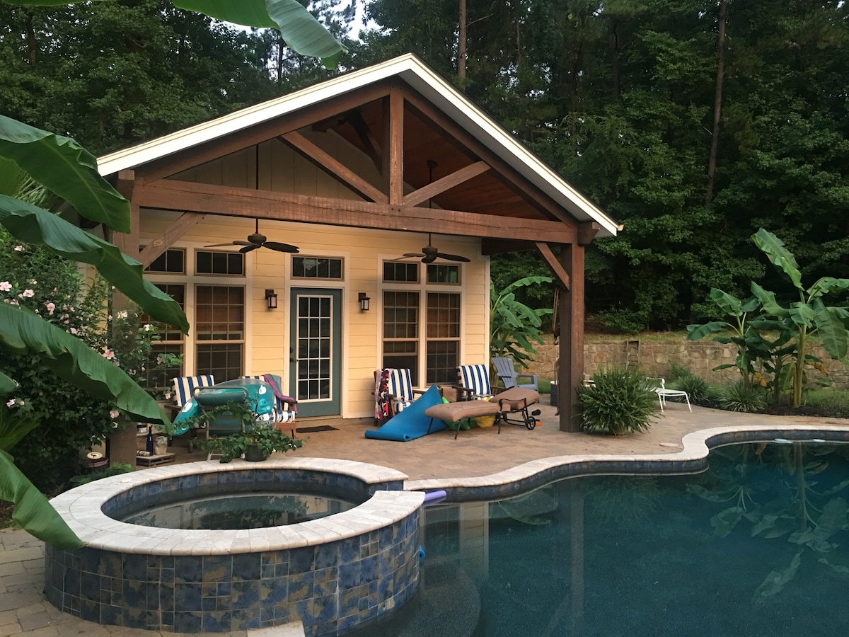Ubicado justo al oeste de los históricos Nacogdoches en el lago Nacogdoches. El cómodo espacio para dos personas se encuentra detrás de nuestra casa principal rodeado de piscina, jacuzzi, fogata y más. La entrada es por código clave para una estadía sin estrés. Los propietarios suelen estar a un mensaje de texto o una llamada de distancia para obtener ayuda. El lago que atrae a los pescadores durante todo el año está a 2 minutos a pie. Allí encontrarás dos kayaks utilizados para pescar o explorar . Por la noche, disfrutarás de contemplar las estrellas alrededor de la chimenea, ya que estás a kilómetros de la ciudad.