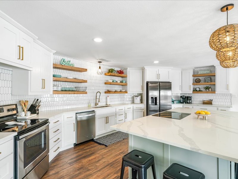 Boat and Jet ski rental! The Island Oasis is surrounded by panoramic water views on 3/4 of an acre on the “Island” in a gated community. The 365 acre lake has excellent fishing, kayaking, boating & swimming! Maui Mat, 2 kayaks + 2 SUP are available for your adventure with Life jackets. You will love the massive gourmet chef's kitchen for family meals! This home boasts 2400 Sqft + 3 bedrooms +3 bathrooms making it easy to accommodate up to 12 guests. Loft bedroom stairs steep. Pet friendly!