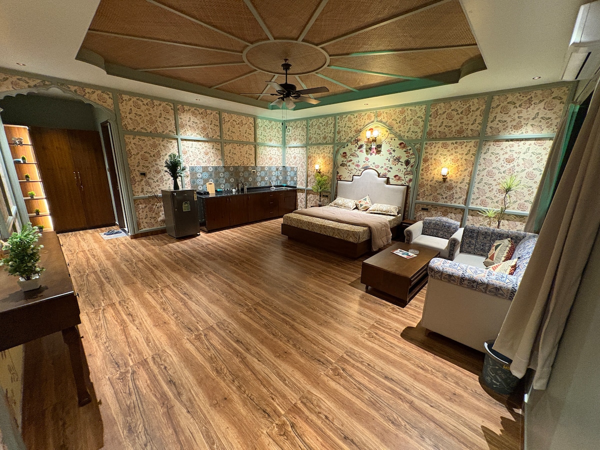 ¡Bienvenido a Jaipur! Ubicado en la zona más céntrica de la Ciudad Rosa, este exclusivo y espacioso apartamento tipo estudio de 1 dormitorio está diseñado majestuosamente para asegurarte de que disfrutes de la estancia más lujosa junto con todas las comodidades. Ubicado a solo 4 minutos de la principal estación de tren de Jaipur, es el lugar perfecto desde donde puedes explorar fácilmente Jaipur como un lugareño. Desde aquí, la ciudad amurallada está a solo unos minutos en tuk tuk para que puedas llegar fácilmente a todas las atracciones más populares de la ciudad de Jaipur.