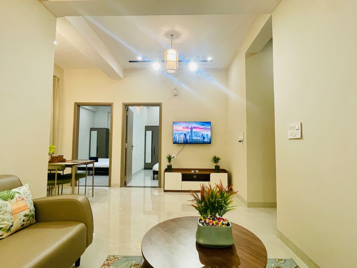 Ubicado en el corazón de Jaipur, en la encantadora zona residencial de Bani Park, el apartamento ofrece una mezcla de comodidad y estilo. Disfruta de comodidades de lujo como una televisión inteligente, una cocina totalmente equipada, ropa de cama fresca, internet de alta velocidad y lavandería interna con instalaciones de planchado. Los tonos apagados, los matices suaves y los motivos florales impresos a mano inspirados en la Ciudad Rosa crean un ambiente cálido y vacacional, lo que la convierte en un hogar perfecto lejos de casa durante tu visita a Jaipur.
