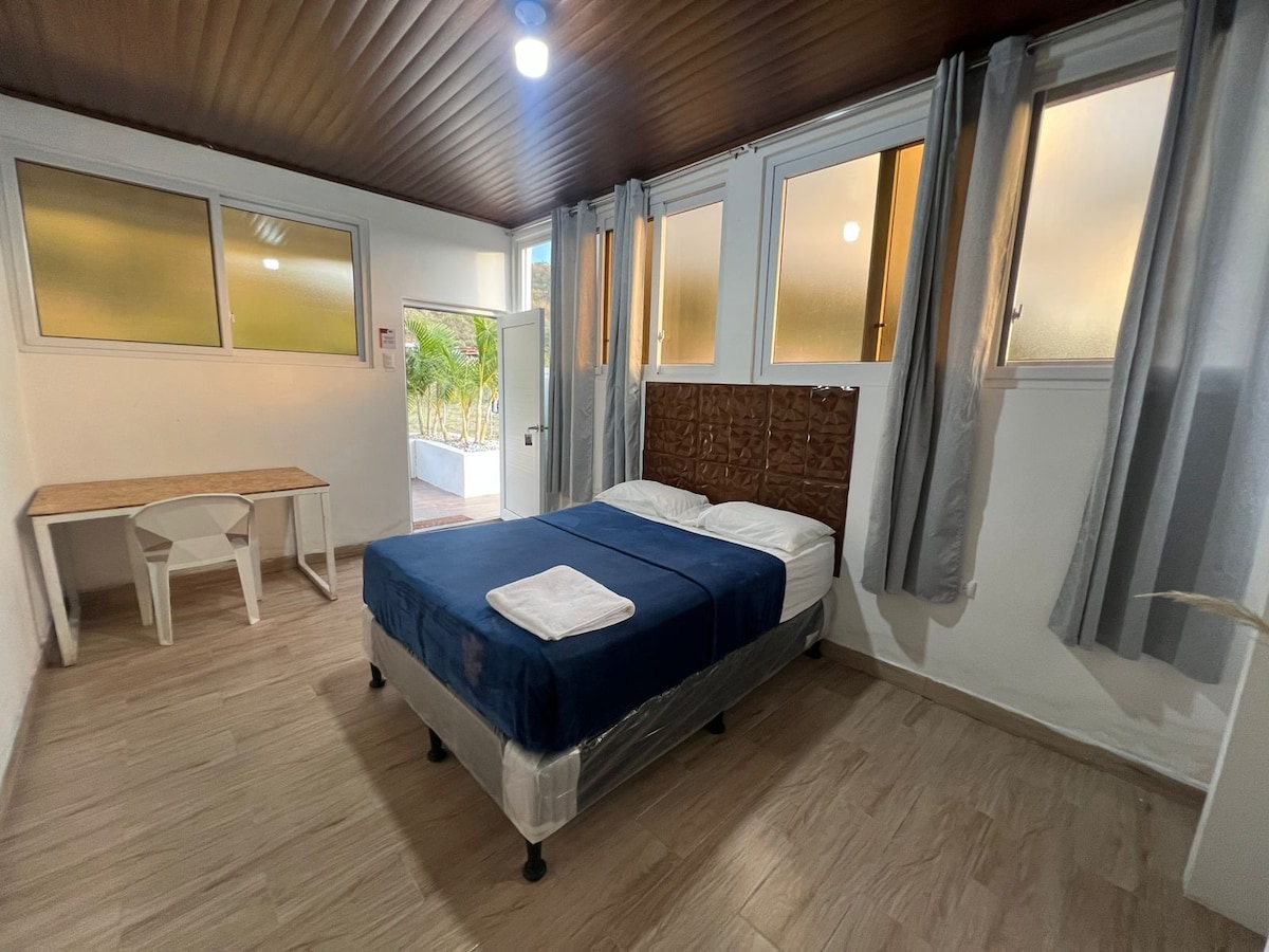 Disfruta de una experiencia inolvidable en este alojamiento céntrico en Jalapa/Jalapa a 2 minutos del parque central, primer nivel📍 Casa dividida en 4 apartamentos independientes. ▫️Habitación Principal, 1 cama Queen Ortopédica . ▫️Habitación Secundaria, 2 literas con camas tamaño imperial (todas Ortopédicas) ▫️Área de cocina: estufa de gas, Microondas, Refrigerador y utensilios de Cocina, ▫️Área de Sala (Sofa cama) y Comedor ▫️Area compartida parqueo para un vehículo.