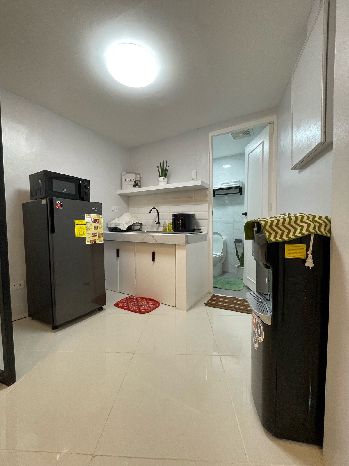 Disfruta de la comodidad tropical y los espacios verdes de la ciudad. Alójate en un lugar tranquilo pero céntrico en el sur de Metro (Filinvest City, Alabama, Muntinlupa). Dentro del complejo hotelero/comercial y a poca distancia a pie de centros comerciales, supermercados, oficinas, escuelas y hospitales. Accesible a través de autopistas desde el aeropuerto de Manila. Disfruta del juego Monopoly, juegos de PS5, Netflix, Youtube, canales de TV, o simplemente usa el WIFI rápido de 350mbps. Piscina (600 PHP/uso) y aparcamiento (300 PHP/día) disponibles como tarifa adicional (sujeta a cambios).