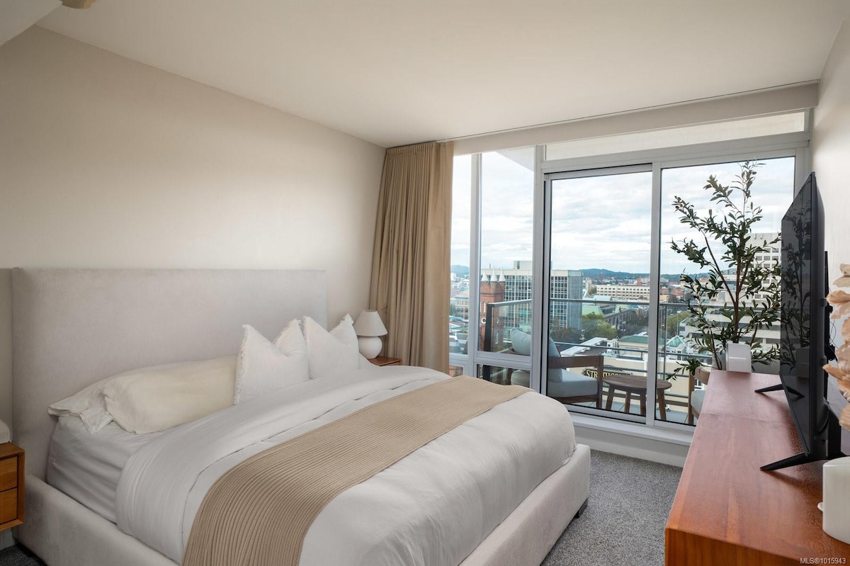 Excelentes vistas de la Emperatriz, la ciudad y el océano desde este exclusivo oasis del centro de la ciudad. Esta unidad de dos dormitorios (camas tamaño queen), dos baños más estudio en la esquina del piso 11 se encuentra en el lado tranquilo del edificio. El concepto abierto de la gran habitación está bañada de luz natural desde el suelo hasta el techo con ventanas orientadas al sur. La chimenea crea un ambiente encantador. Las encimeras de granito, la encimera de gas y una gran isla hacen de la cocina una delicia para los chefs. El espacioso dormitorio principal cuenta con un baño privado tipo spa.