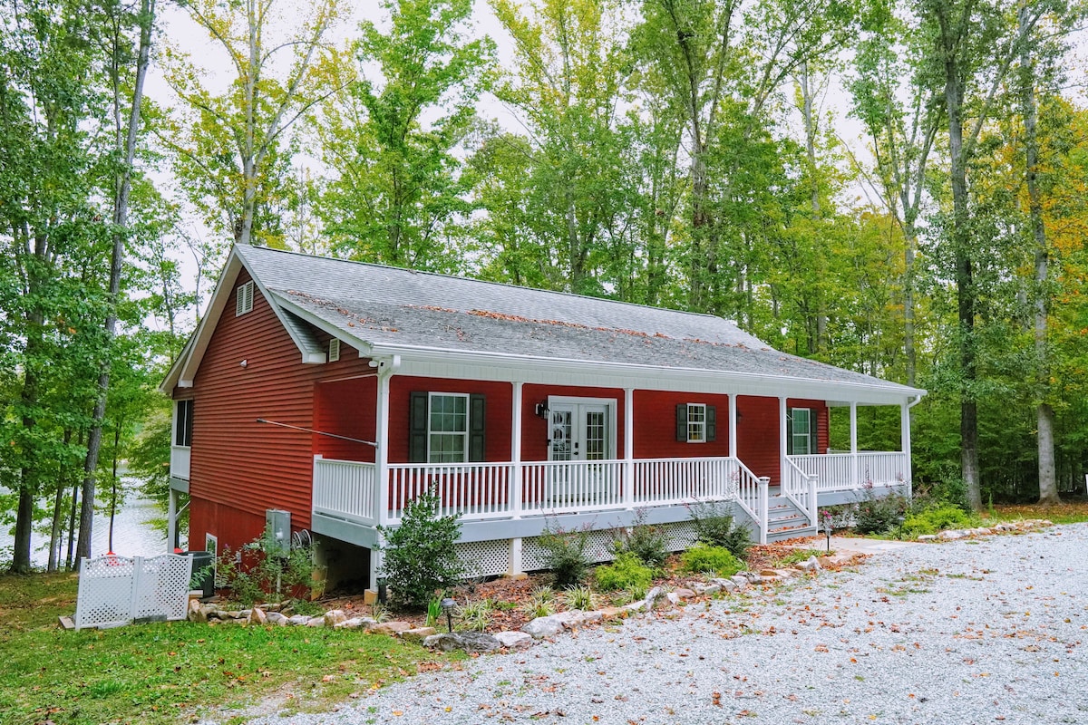 Relájate en un mini refugio privado: disfruta despertándote en la cama tamaño king con vistas al bosque, el canto de los pájaros y un porche delantero hecho para sentarse. Escucha la lluvia en el techo de hojalata o disfruta de una fogata en el fogón después de dar un paseo por nuestros senderos boscosos privados o vadear en el arroyo. Mantente conectado con WiFi o simplemente acomódate con un libro o un juego. La vida silvestre abunda en esta granja de plantas forestales. Aproximadamente a 15 minutos del centro de Blackstone y Ft. ¡Pickett, este es el lugar perfecto para escapar!