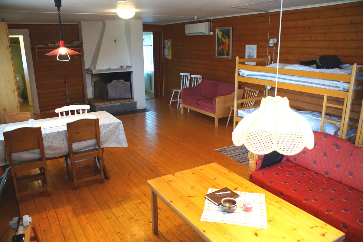 Ubicada a orillas de un lago, esta cómoda y encantadora cabaña de madera de 1850 puede ser tu escapada a la privacidad y la tranquilidad. La cabaña consta de una cocina, un salón y un dormitorio para un máximo de 4 personas. Disfruta de una sauna calentada con leña, un baño en el lago, senderismo, escritura, recolección de bayas o un paseo en barco y pesca. Ideal como refugio para pescadores, escritores y amantes, o familias con niños mayores que quieran pasar tiempo juntos lejos de las distracciones de la ciudad. ¡Ven a relajarte!