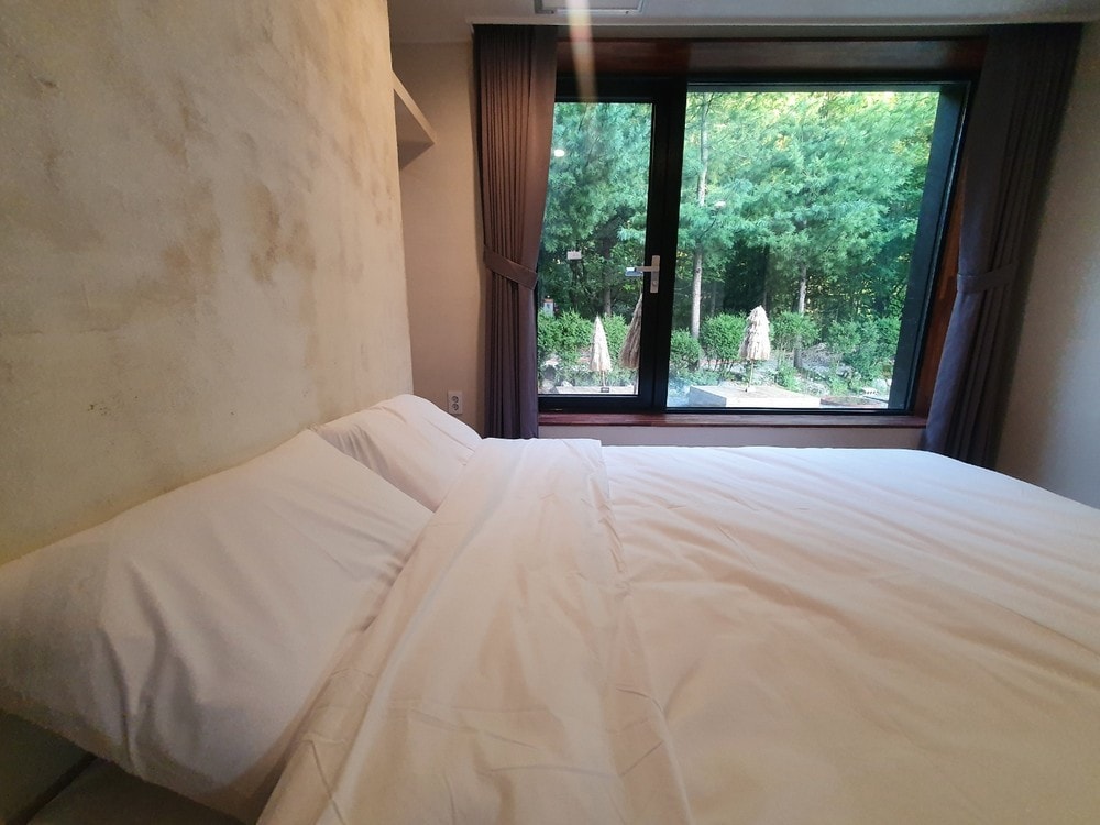 ¡Tres habitaciones, piscina al aire libre con aguas termales gratuitas y sauna de lujo, hotel y resort, estancia emocional con hermosas vistas al lago Cheongcho!