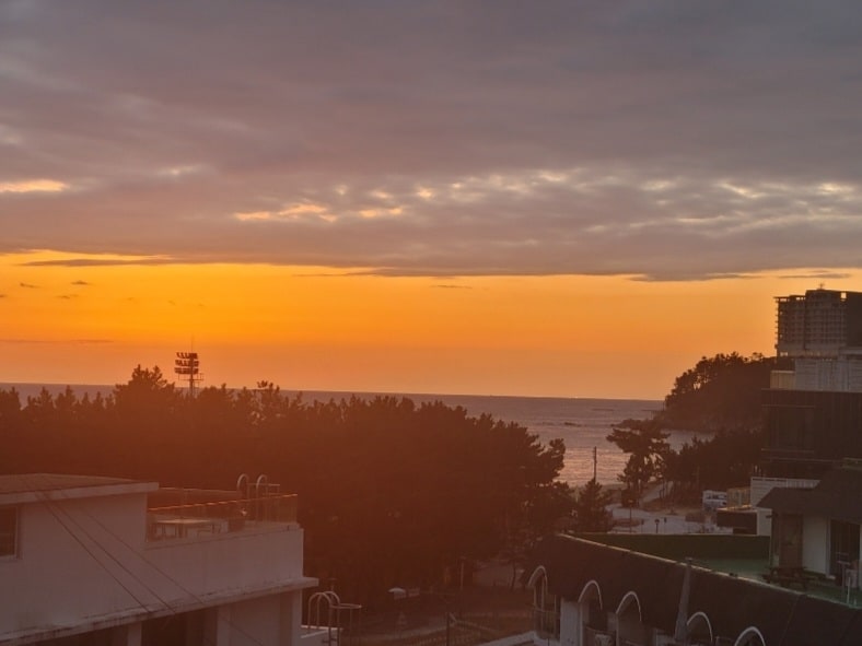 Vista al mar (Sun Rise), Recreation Ocean Park, Starbucks Morning Coffee, 30 segundos a la playa de Sokcho #Karencia