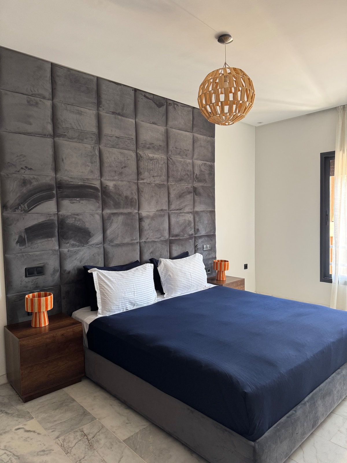 Nuestro apartamento está convenientemente ubicado en el corazón de Marrakech. A poca distancia a pie de la estación de tren, numerosas cafeterías, restaurantes, tiendas de comestibles y supermercados. El aeropuerto está a solo 12 minutos en coche, por lo que es ideal para los viajeros. • La propiedad ofrece wifi de alta velocidad, Netflix e IPTV, aire acondicionado, piscina cubierta, gimnasio, aparcamiento privado y cubierto, y seguridad y vigilancia las 24 horas, los 7 días de la semana.