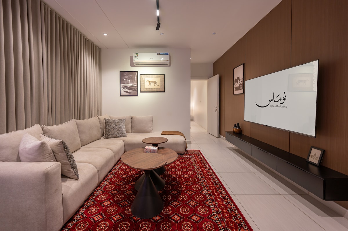 Disfruta de una estancia cómoda y moderna en un apartamento de dos dormitorios con un diseño moderno y equipado con todo lo que necesitas. El apartamento está en una ubicación privilegiada en King Abdulaziz Road, y es: • A cambio de tiempo de ejercicio • A 5 minutos del centro comercial Radsy • A 7 minutos del paseo marítimo • A 12 minutos del aeropuerto El apartamento📺 incluye: • Pantalla Samsung de 85 pulgadas para una experiencia de entretenimiento de lujo • Lavadora y secadora LG • Lavaplatos • Microondas y horno de ALBA • Cocina totalmente equipada. • Wifi de alta velocidad. • Acceso inteligente para mayor privacidad y flexibilidad El lugar es perfecto, combinando comodidad y una ubicación privilegiada.