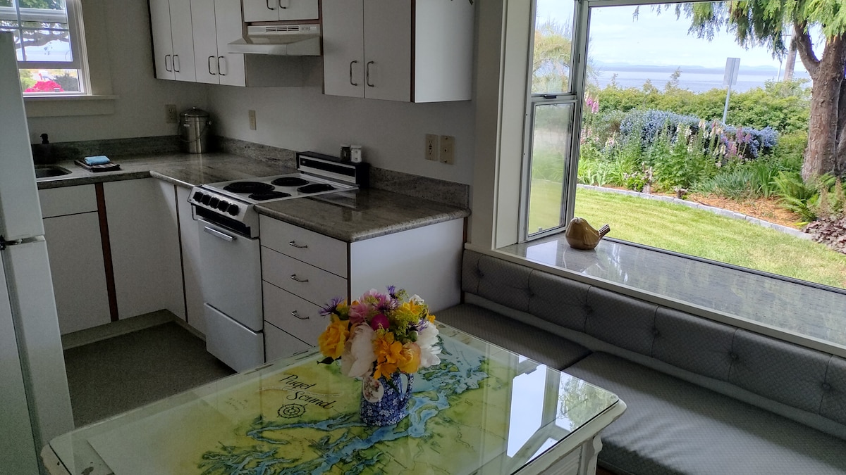 A pocos pasos de una playa privada y rodeado de exuberantes jardines, tu escapada al campo comienza en Beach Garden Cottage. Disfruta de los amaneceres, la migración de las aves y el tráfico marino desde la comodidad de la cama tamaño queen o el acogedor sofá de dos plazas en este estudio decorado con buen gusto que cuenta con una cocina completa y un baño. Comienza tus mañanas con café en el patio y termina tus noches en la playa con una copa de vino. Beach Garden Cottage es un refugio escondido a solo 10 minutos del centro de Sequim.