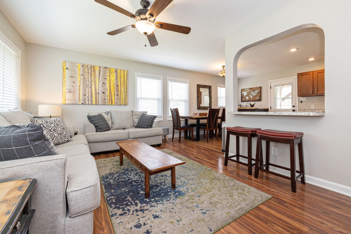 Disfruta de una estancia en este espacioso rancho bellamente decorado en East Louisville. Combinando una decoración moderna orgánica y una funcionalidad intencional, te sentirás relajado y como en casa. La casa está enclavada en un barrio tranquilo y, sin embargo, a solo 1 milla de la interestatal, convenientemente ubicada, un viaje en coche a cualquier lugar no está lejos. ¡Trae a tu equipo a la ciudad para experimentar un día en el hipódromo, un tour de bourbon o una escapada familiar a Kentucky!