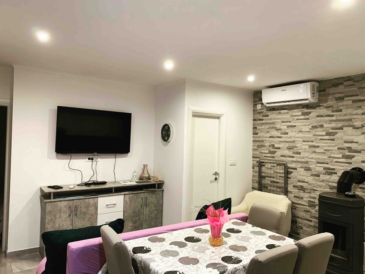 Nuevo apartamento funcional y con aire acondicionado dentro de una casa familiar en el primer piso, en una ubicación tranquila cerca de los paseos por el bosque, a poca distancia del mar y del centro de la ciudad de Rijeka. El apartamento consta de dos dormitorios,uno con una cama doble y el otro con dos camas individuales, ambos tienen acceso a un balcón soleado. En la sala de estar, la sala de tres plazas también sirve como cama doble adicional, la cocina y la sala de estar están compuestas por un espacio y un hermoso baño.