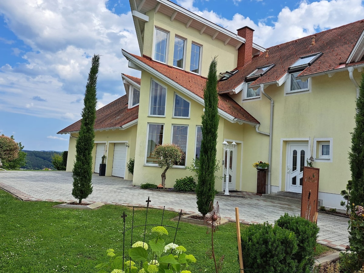 Große modern ausgestattete Ferienwohnung mit viel Platz (90m2). Terrasse/Sitzbereich im angelegten Innengarten mit Pavillon und Grill und Lounge-Sitzbereich. Von uns aus erreichen sie die Therme in wenigen Autominuten, bis Ungarn brauchen sie 20min. Dart und Billiard stehen für gesellige Abende zur Verfügung.