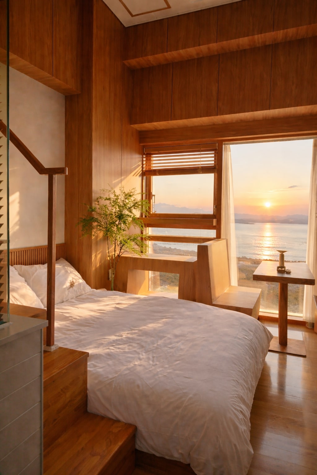 [스테이인가] 석양지는바다뷰,멋진야경#넷플릭스무료#비즈니스출장#호텔침대#장기숙박
